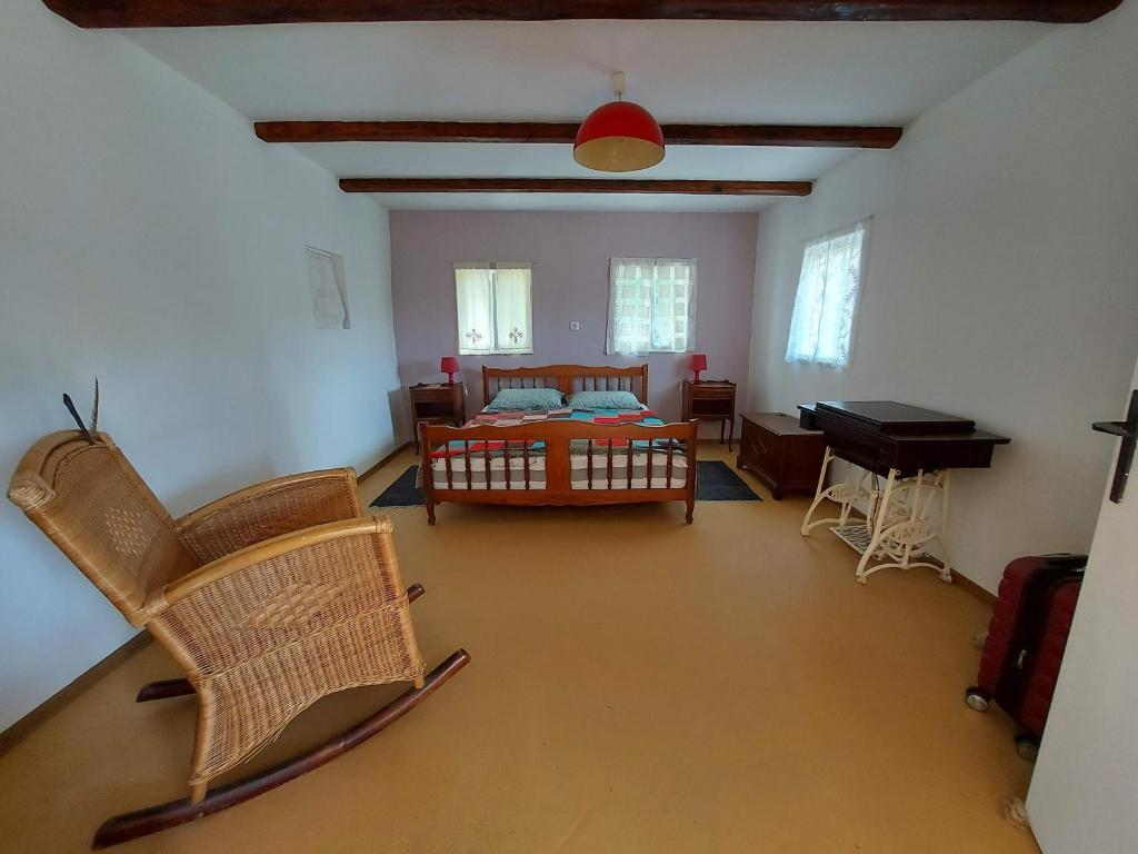 Casă de țară din lemn izolată în zona rurală, continentală a Croației. Casa este inconjurata de natura si nu sunt vecini in apropiere - o vacanta perfecta pentru iubitorii de liniste si intimitate. Cel mai apropiat loc este Topusko, la 8 km de casa. Casa are un dormitor mare (pat 140x190), sufragerie, bucatarie si baie, wifi, gratar, masina de spalat si o gradina mare. Piscina se află la 10 minute de mers cu mașina, în Topusko. În funcție de anotimp, puteți găsi ciuperci și fructe de pădure în pădurea din apropiere, pomi fructiferi în jurul casei, iar ouă proaspete pot fi găsite la ferma din apropiere. Drumurile de țară vă așteaptă aventura. Și te poți relaxa și te bucuri de liniște. Casa de țară confortabilă are aproape 100 de ani și recent renovată. Majoritatea mobilierului este, de asemenea, recondiționat, deoarece încercăm să reutilizam și să reciclăm. Parcarea este langa casa. O destinație preferată pentru persoanele cu câini.