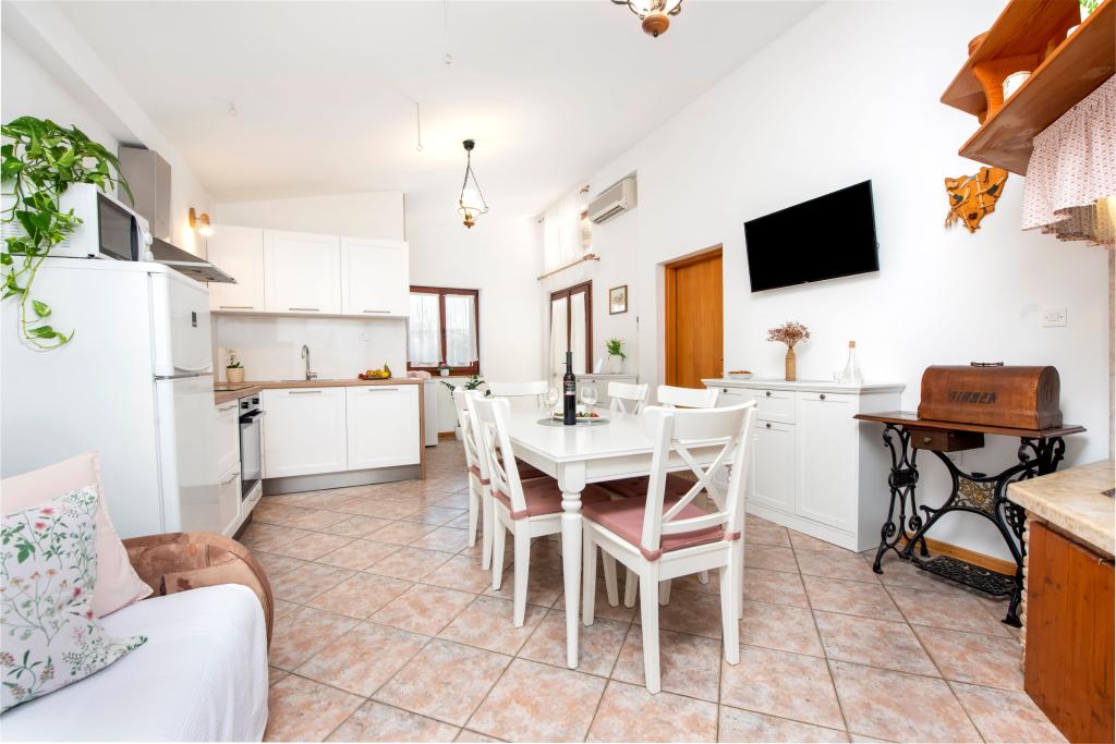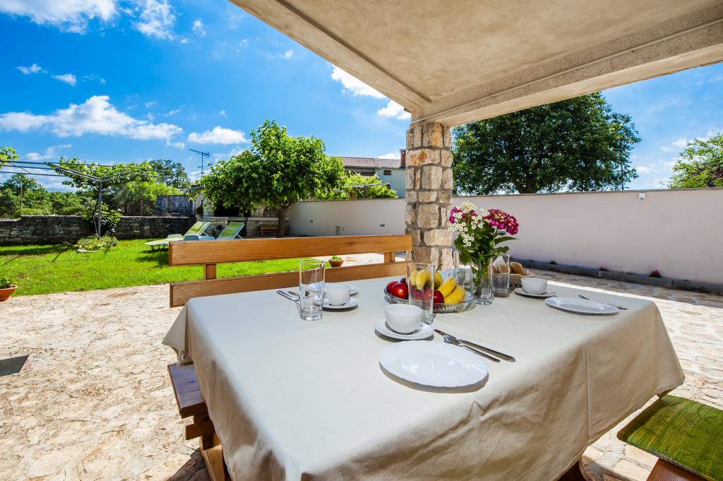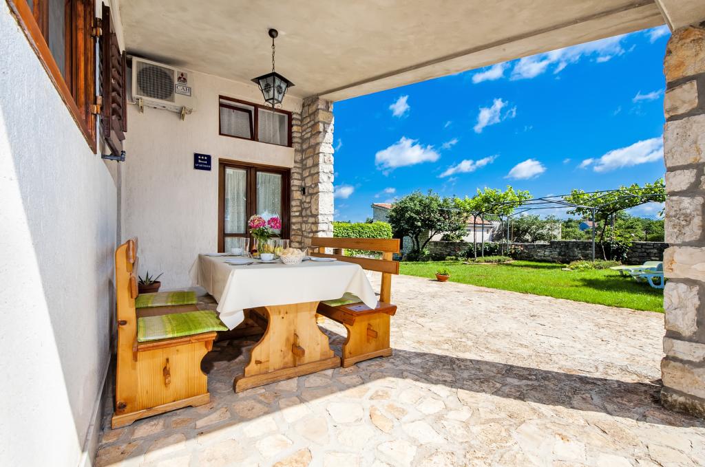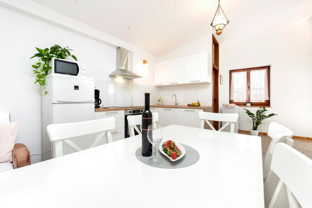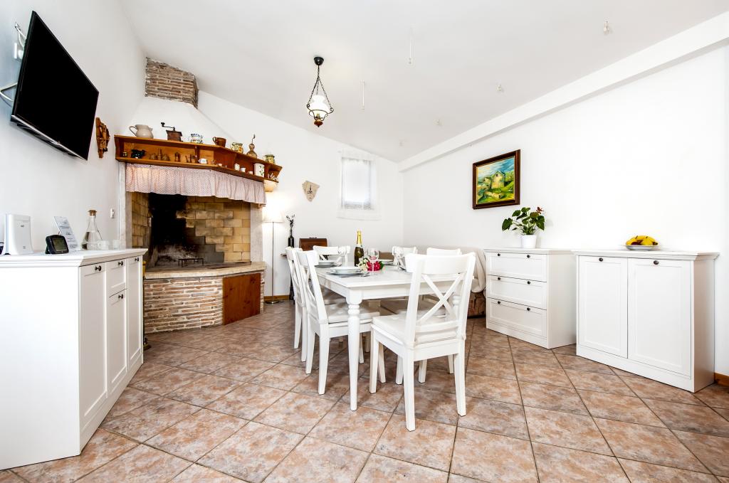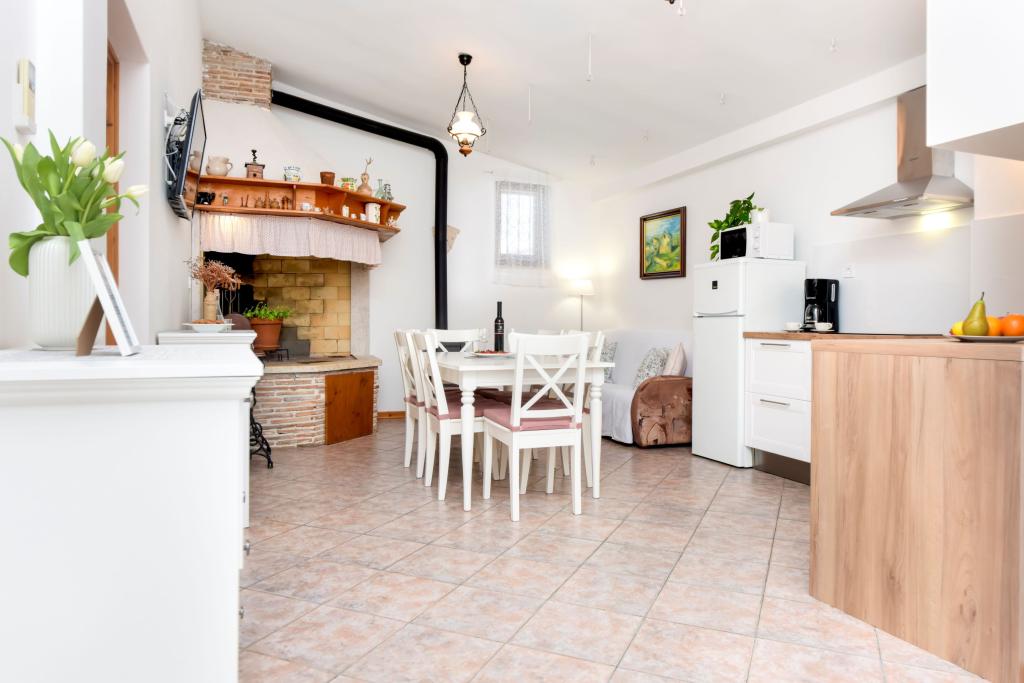 Casa Nino este situată în satul Krmed, o așezare la 7 km nord-est de municipiul Bale. Este situat pe drumul județean Bale–Smoljanci–Svetvinčenat. Este la doar 8 minute cu mașina de Bal și la 25 de minute de Rovinj. Dacă ești în căutarea unei cazări departe de zgomotul orașului, dar în același timp suficient de aproape de toate destinațiile din jur, aceasta este alegerea perfectă pentru tine. Cea mai apropiată plajă din Bala (Colone sau San Polo) este la doar 13 km cu mașina, iar plaja Cisterna este la 16 km. Întreaga casă, grădina, cărbune și grătar de lemne vă stau la dispoziție. Cazare ideala pentru o familie cu copii si animale de companie. Casa a fost construită în stilul caracteristic istrian, este acoperită cu piatră. Este moștenirea noastră, așa că suntem deosebit de atașați de ea. Are doua dormitoare, un living si o bucatarie, o baie si o terasa acoperita. In fata casei este o curte imprejmuita in care poti sta in liniste. Animalele de companie sunt binevenite! Locuim in Rovinj si venim la Krmed cu programare. Vă respectăm intimitatea