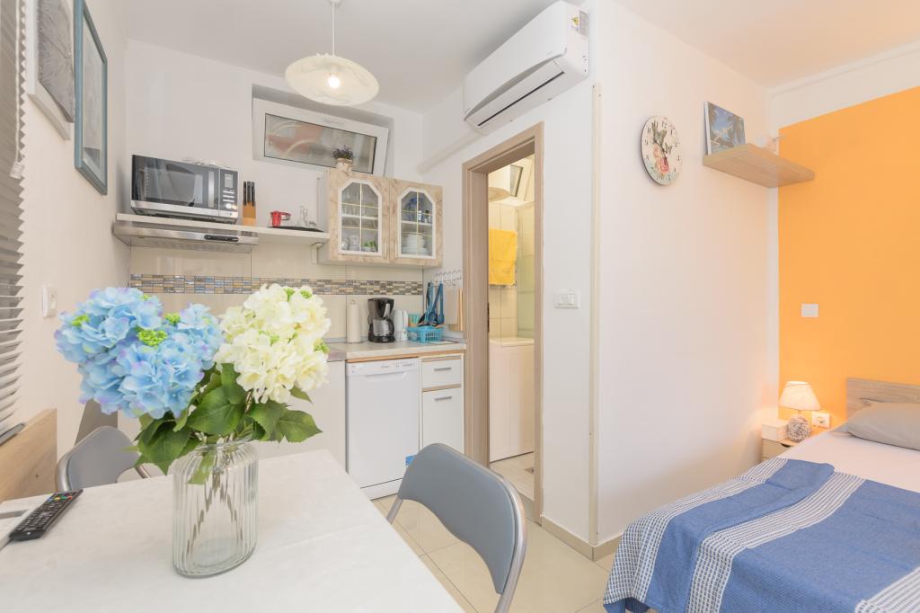 Garsoniera utilata modern (2+1) primul rand la mare intr-o zona turistica foarte linistita ca casa separata. O terasă mică cu grătar, duș în aer liber și vedere la mare de pe terasă. Are copertina proprie pentru o ședere plăcută la umbră. Magazinul și restaurantul sunt la 1000 de metri, iar prima plajă este la 300 de metri. Parcarea în apropierea clădirii este gratuită. Vă puteți bucura de plimbări de dimineață și de seară de-a lungul mării până la Hotelul Del Mar și înapoi. Tot in apropiere se afla si parcul national Kamenjak - Premantura, la o distanta de aprox. 4000 de metri.