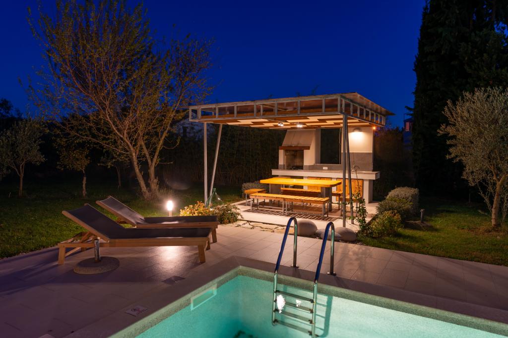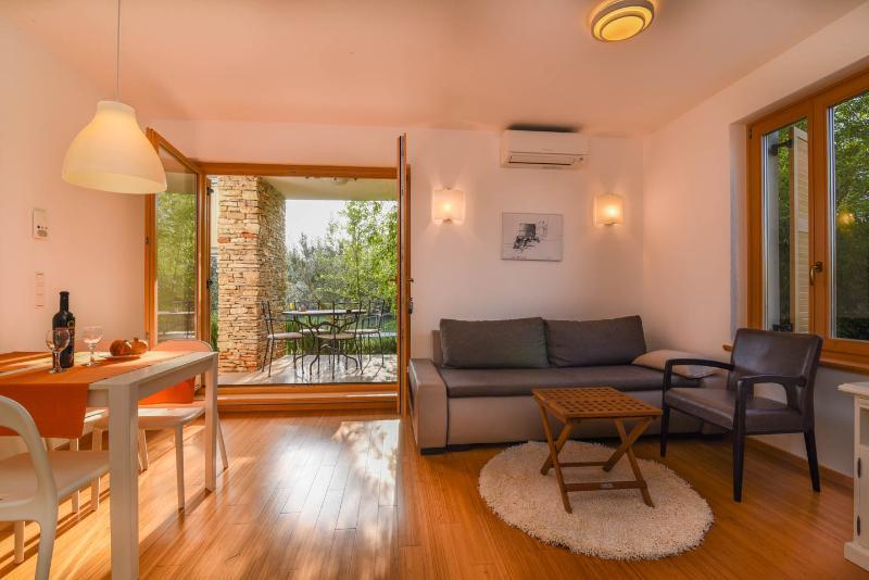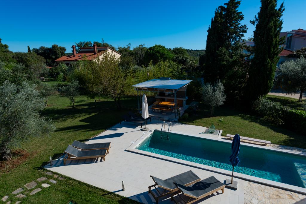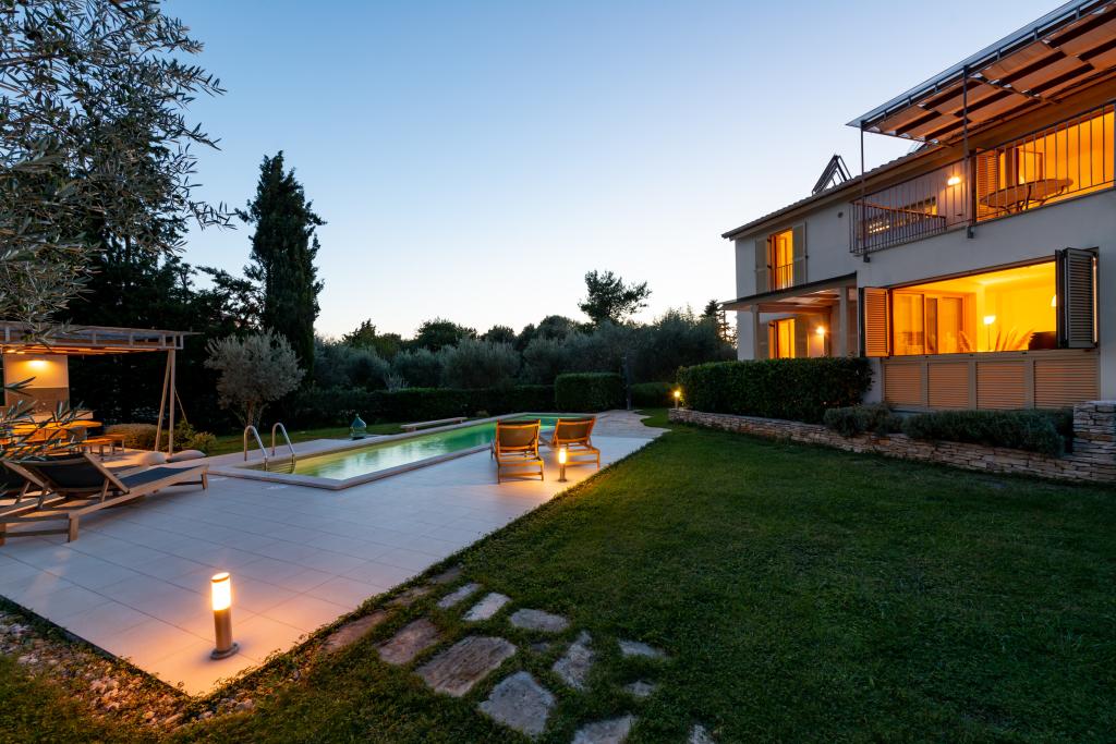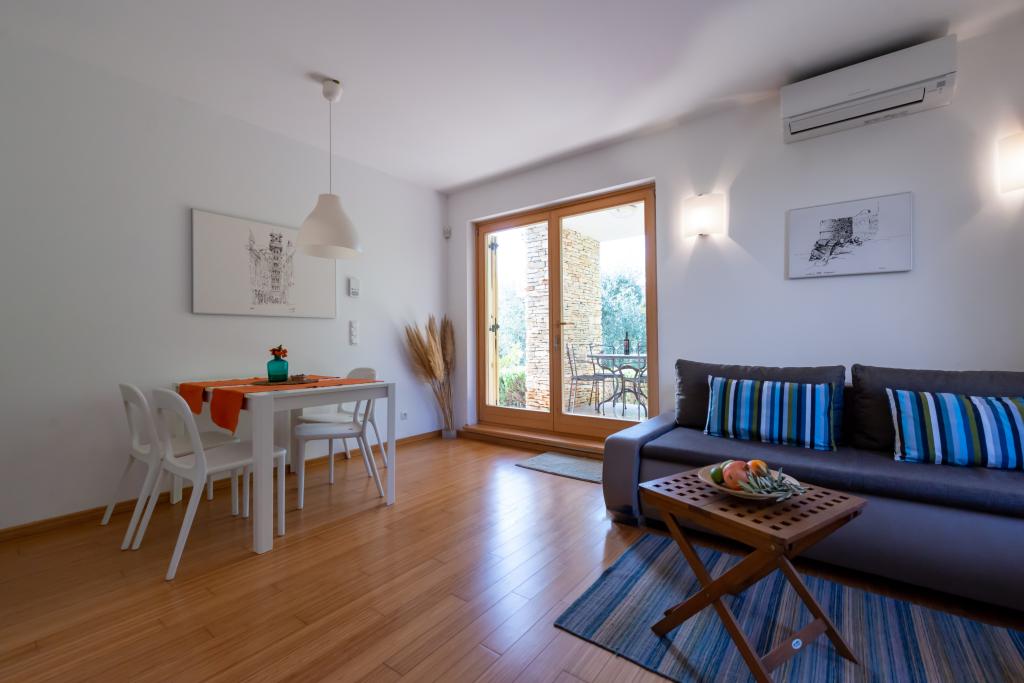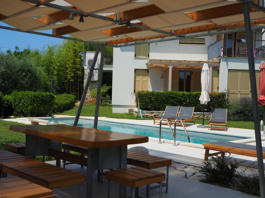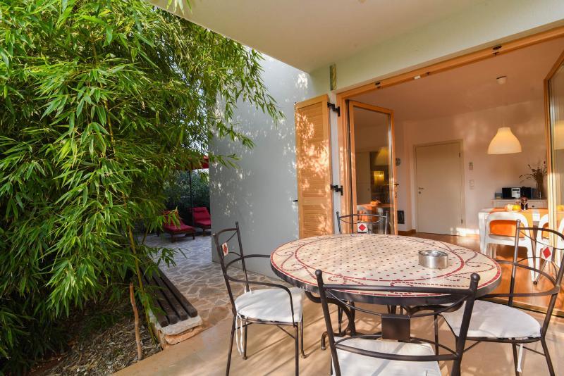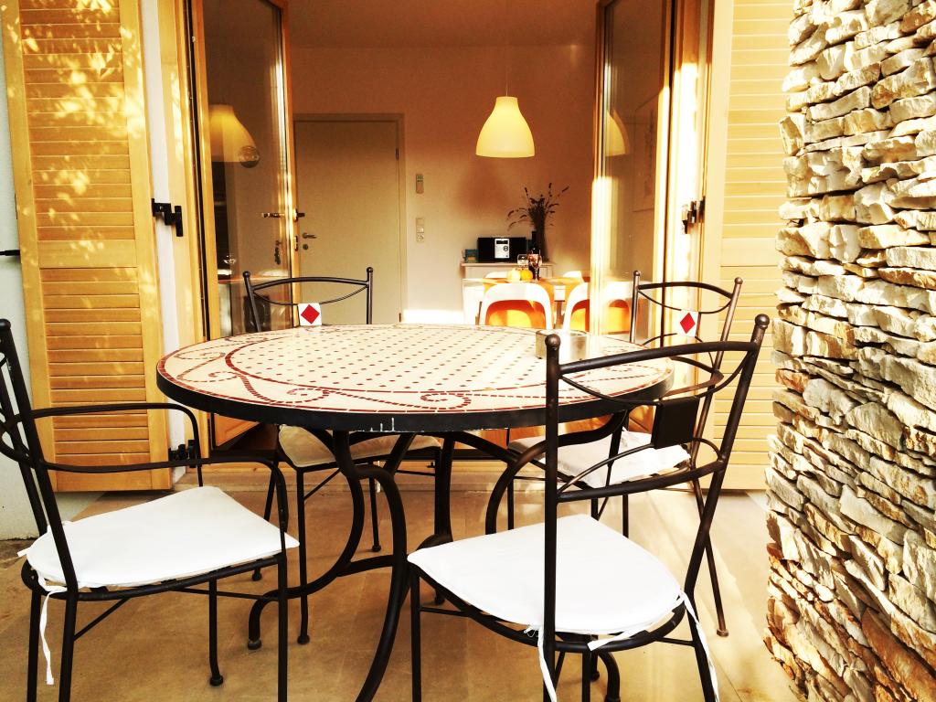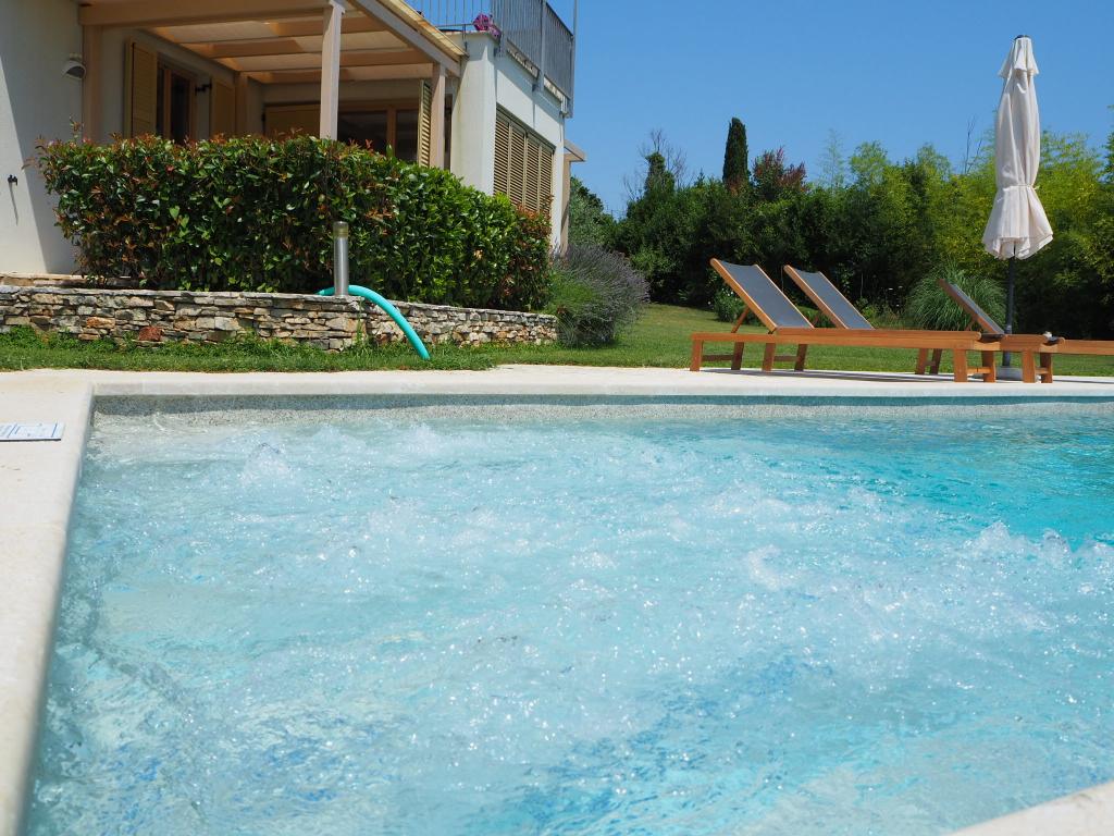 Casa frumoasa cu 4 apartamente, piscina si gradina cu plante mediteraneene. fiecare apartament are intimitate deplina in spatiul sau cu terase ascunse privirii oricui. Două apartamente sunt la parter și două la primul etaj, dotate cu echipamente de înaltă calitate pentru un sejur plăcut de mai multe zile.