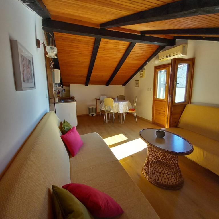 Casa cu două apartamente și un loc de parcare este situată într-un sat mic și liniștit, Mušoga-Banjole, la doar 300 m de plajă. Este potrivită pentru a găzdui 2 familii. Apartamentul Oleander 2+2, la etajul 1 (mansardă joasă), este ideal pentru 2 adulți sau 2 adulți și 1-2 copii mici. Apartamentul este dotat cu aer condiționat și este format dintr-un dormitor dublu, baie, cameră separată cu două canapele/paturi extensibile, un mini-bloc de bucătărie și o terasă. Apartamentul Glicinija pentru 4 persoane, la parter, este format din 2 dormitoare, o sufragerie, o bucătărie, o baie și o curte cu umbră naturală toată ziua. Există numeroase promenade de pe litoral și piste de biciclete în vecinătatea apartamentului. La zece minute de mers pe jos veți ajunge la un supermarket, brutărie, piață de pește, farmacie, agenție de închiriere de biciclete și mai multe restaurante. La doar 6 km de apartament se află peninsula Kamenjak, cu plaje frumoase, mare limpede și un bar Safari unic. Veniți și bucurați-vă de mare, soare, arome mediteraneene și detoxifierea digitală :).