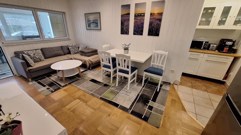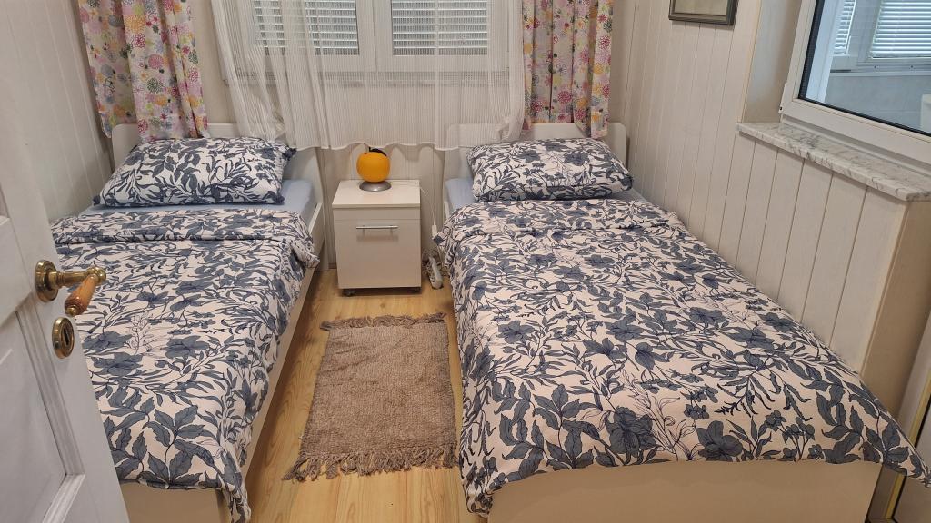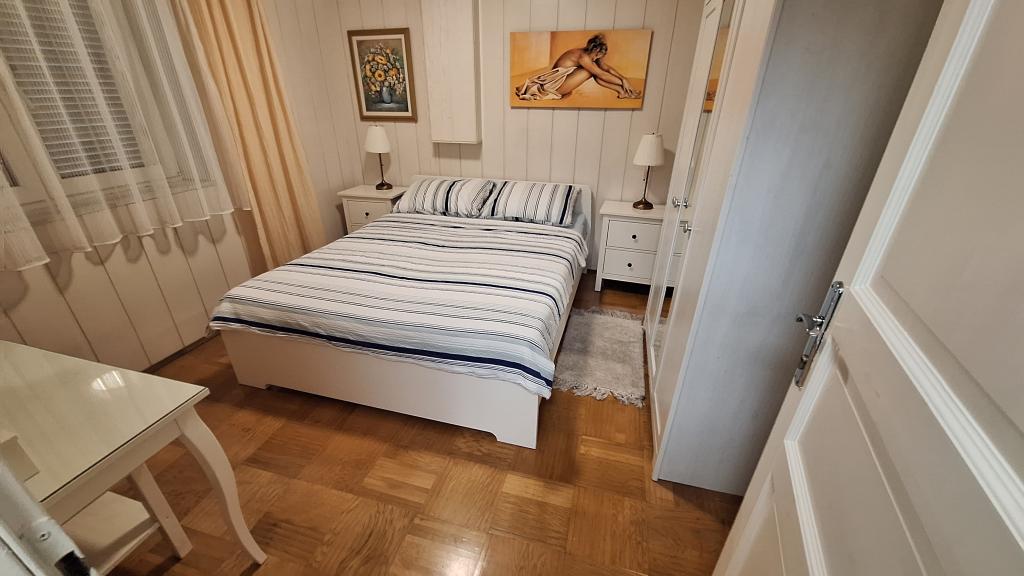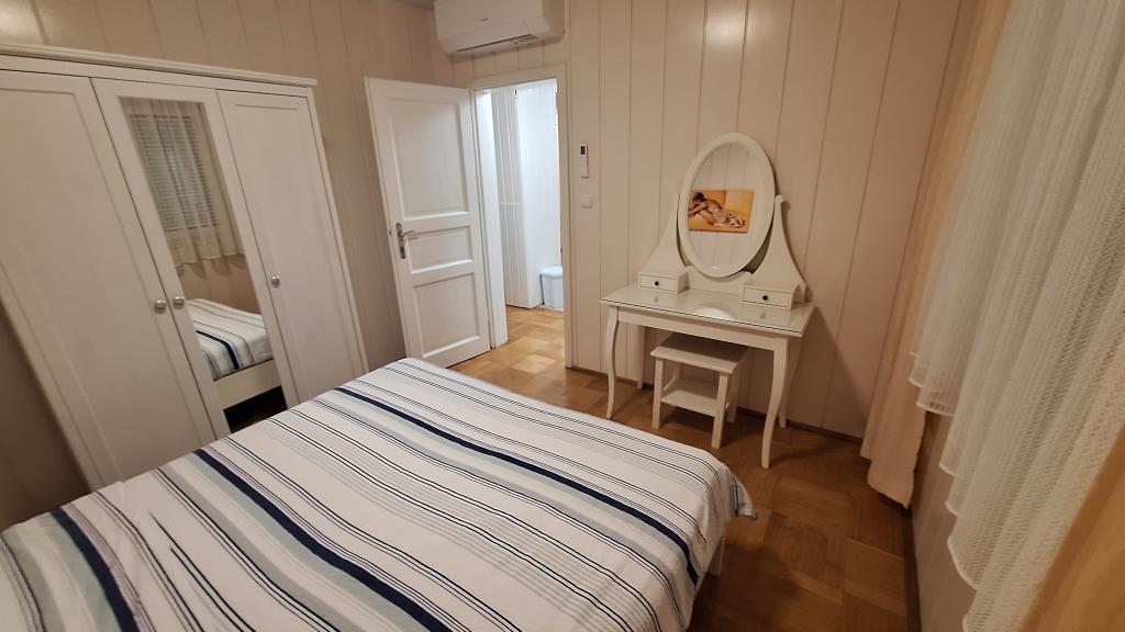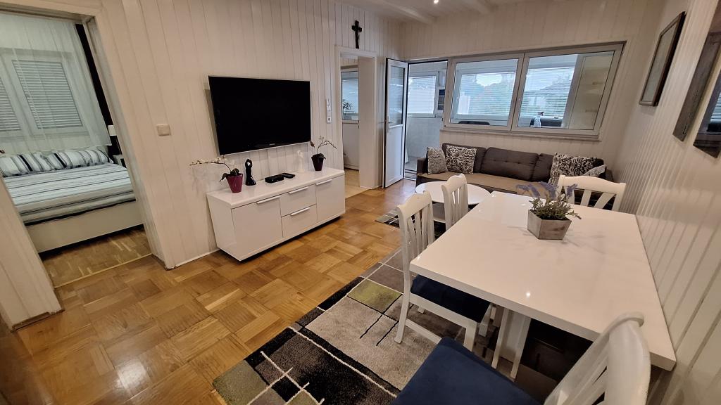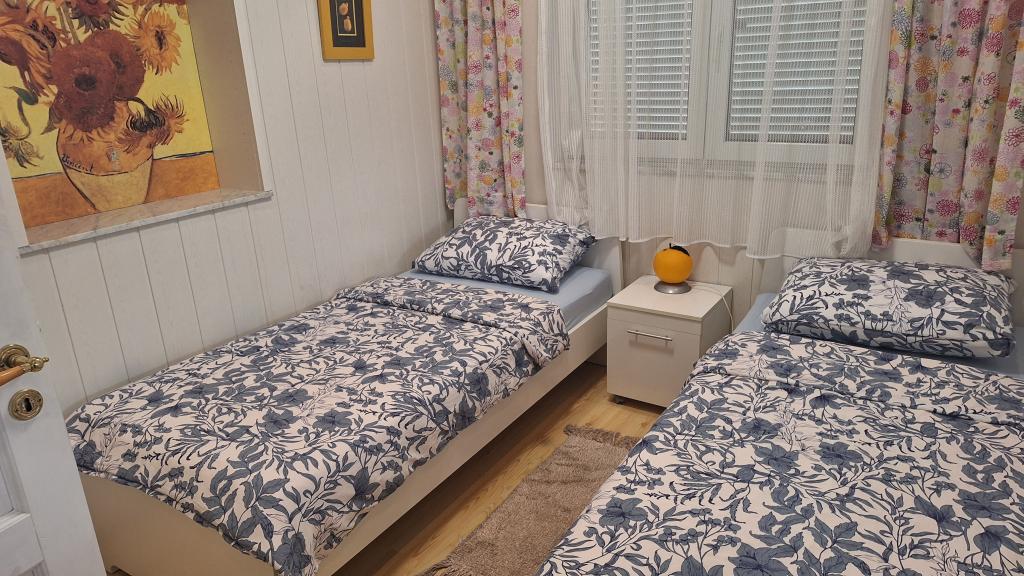 Apartamentul MARIJA este un apartament spațios cu 3 dormitoare și un living. În față se află o terasă acoperită și vitrată. Lângă intrare există un mic spațiu liber unde vă puteți așeza și, eventual, puteți instala un grătar, disponibil în apartament. Chiar în fața intrării există 2 locuri de parcare acoperite pentru 2 mașini.