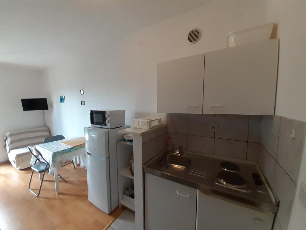 Garsoniera este foarte curat, frumos, funcțional decorate și suficient de spațioasă. Este suficient de inteligent recipient kuhanje- selectat, cu adaos de aparat pentru sandviciuri, ceainic și filtru de cafea. De la balcon, prin densa munca copac destul de umbră oferă o vedere uimitoare la mare. Casa este aproape de plajă. Proprietarii de foarte prietenos și discret.