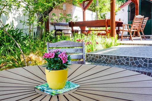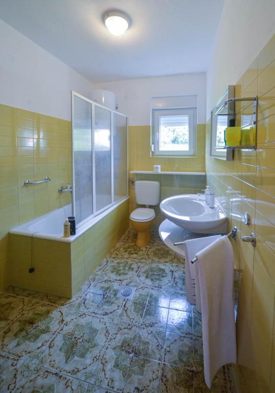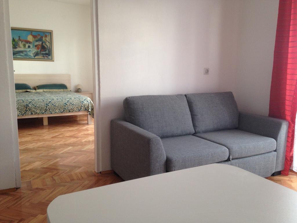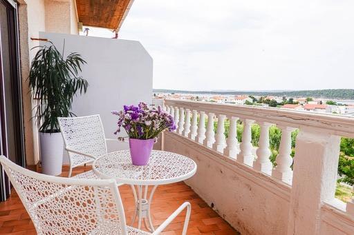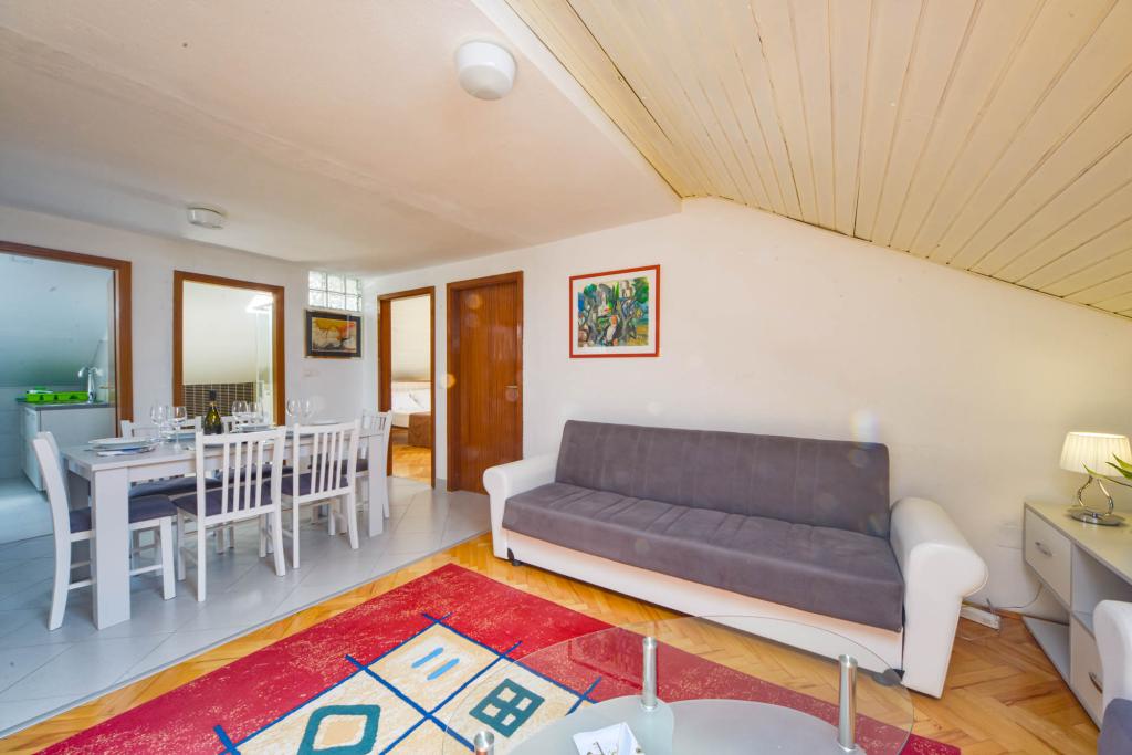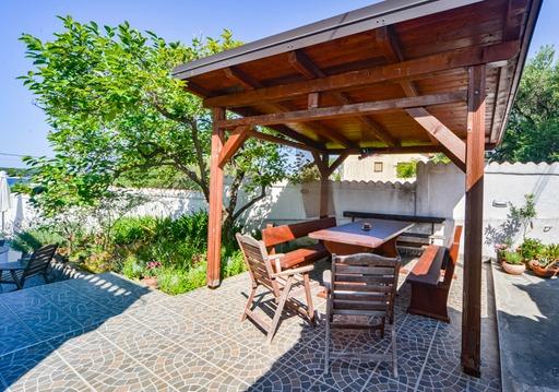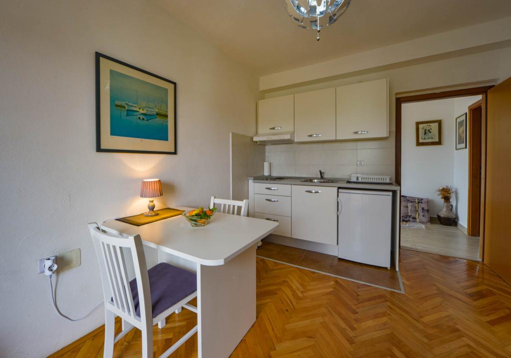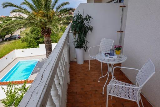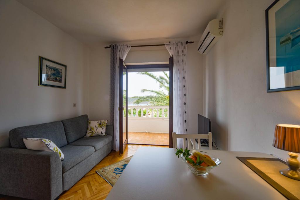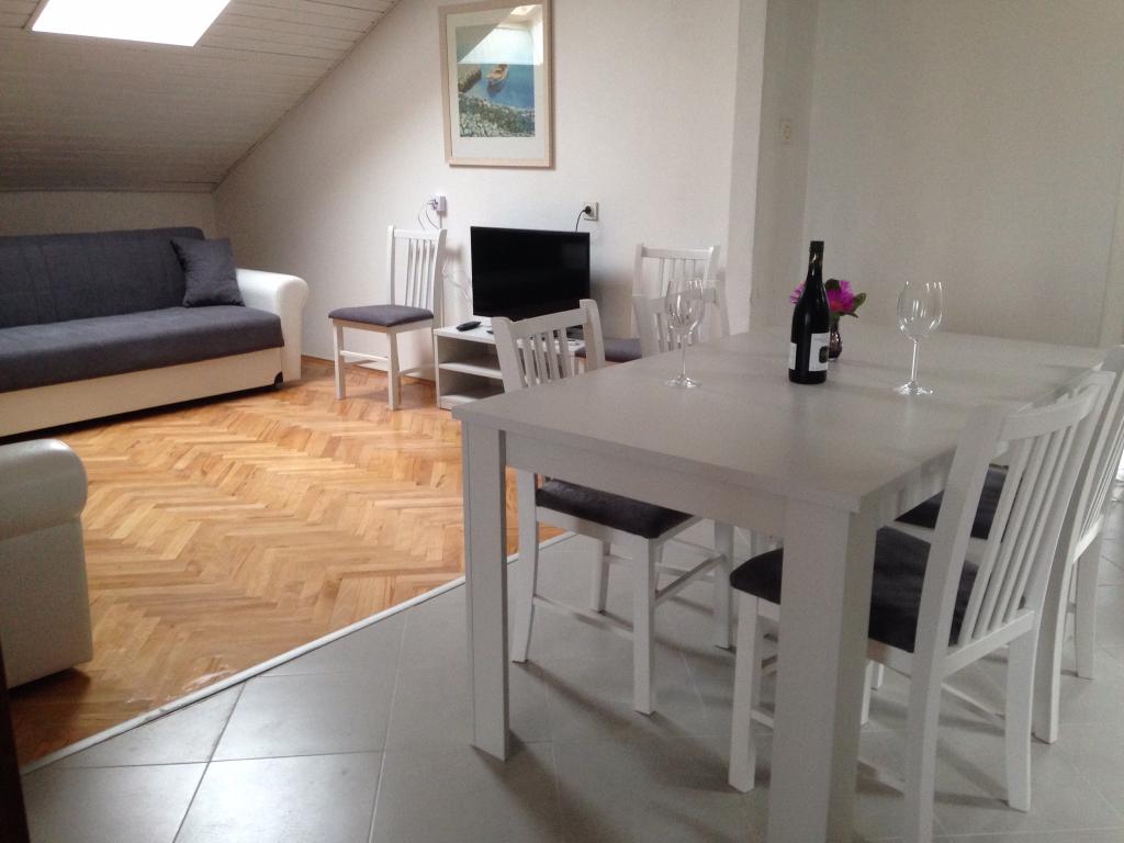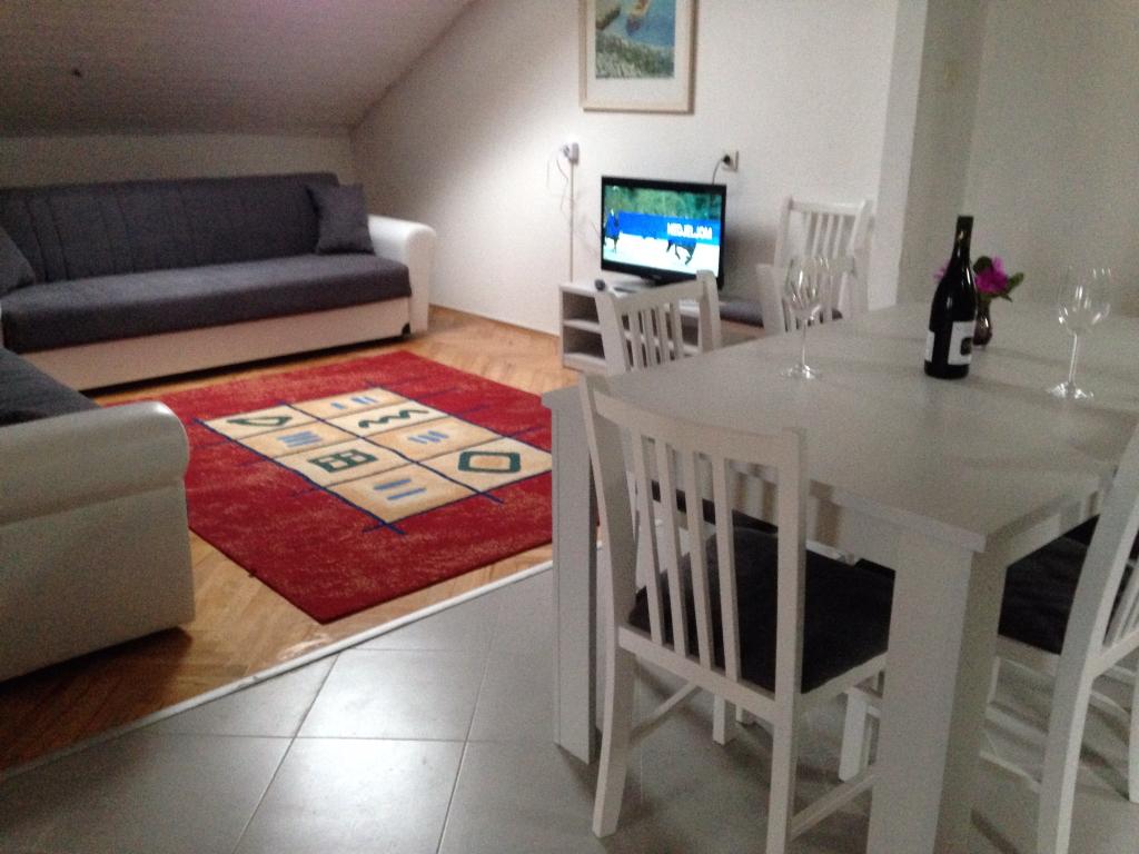 Apartamente spațioase complet echipate, cu vedere la Canalul Bărbat și la Sfântul Damjan (rămășițele unei fortărețe cercetașe bizantine din secolul al VI-lea), cu suficient spațiu exterior pentru ca diferite grupuri să aibă propria intimitate, fie pe terasa spațioasă, la piscină sau în foișorul umbrit de lângă grătar. Casa este potrivită și pentru închiriere completă pentru familii (12 persoane). Copiii și animalele de companie sunt binevenite. Se află la mai puțin de 5 minute de mers pe jos de promenada de pe malul mării cu plaje, restaurante și cafenele - 300 m.