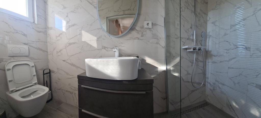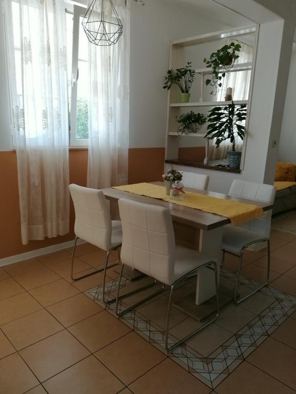 Această frumoasă casă de vacanță modernă este situată în Barbat, pe insula Rab. Apartamentele sunt mobilate frumos si modern. Avem propria noastră parcare și acostare pentru bărci. Oaspeții au la dispoziție două grătare în grădină. Va oferim 5 apartamente. Toate apartamentele au intrare privată. Există numeroase restaurante și magazine în apropiere, la doar câteva minute de mers pe jos. Centrul orașului Rab este la 4 km de casă. Casa noastră este la doar 50 de metri de mare.
