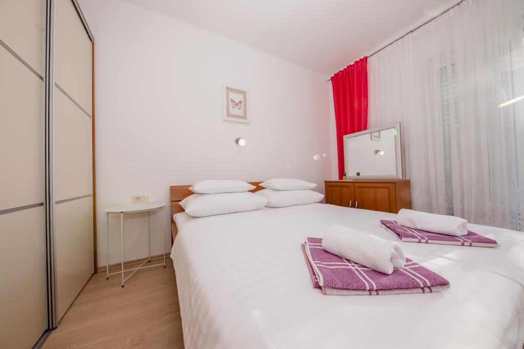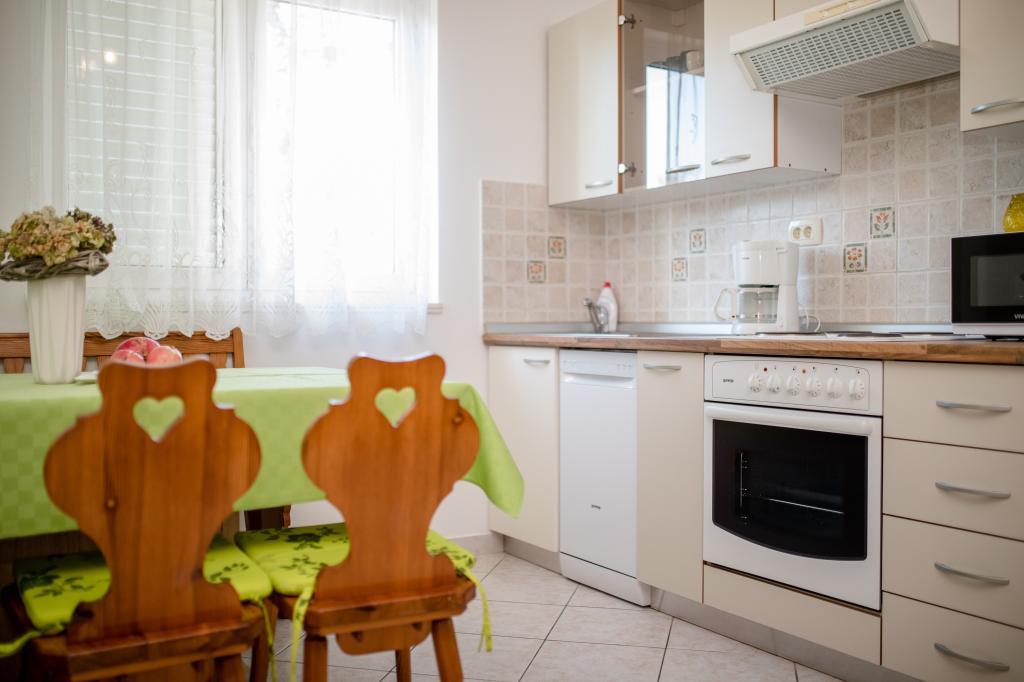 Apartamente complet utilate si modern intr-o zona linistita, situate la 300m de plaja cu pietris. Facilitatea se află la 6 km de centrul orașului Rab, la 2 minute de mers pe jos până la magazin, la 10 minute de mers pe jos până la plajă, la 10 minute de mers pe jos până la cel mai apropiat restaurant. În curte există o zonă comună acoperită cu mese și bănci și un grătar, precum și un loc de joacă pentru copii cu două leagăne și o trambulină. Apartamentele sunt potrivite pentru familiile cu copii, precum și pentru toate celelalte persoane care caută o vacanță liniștită.