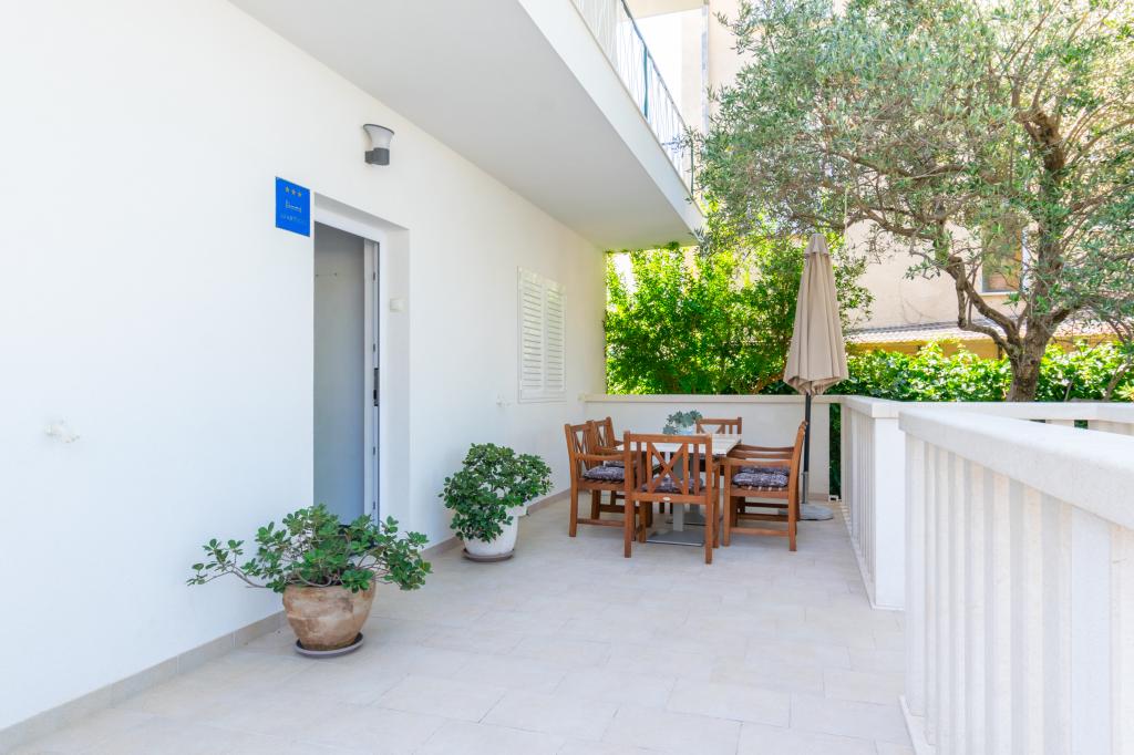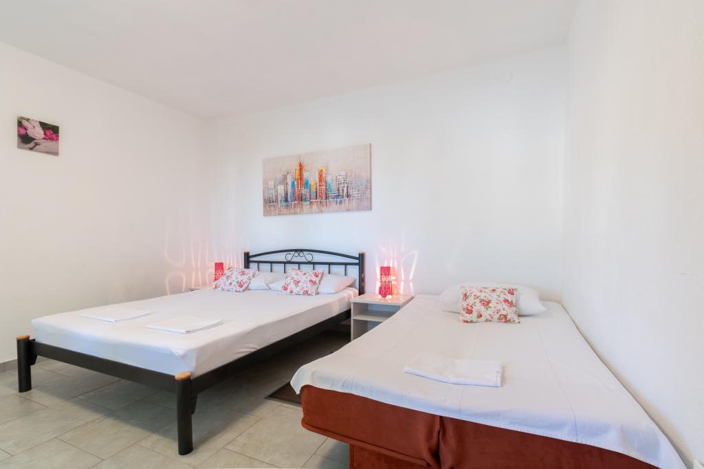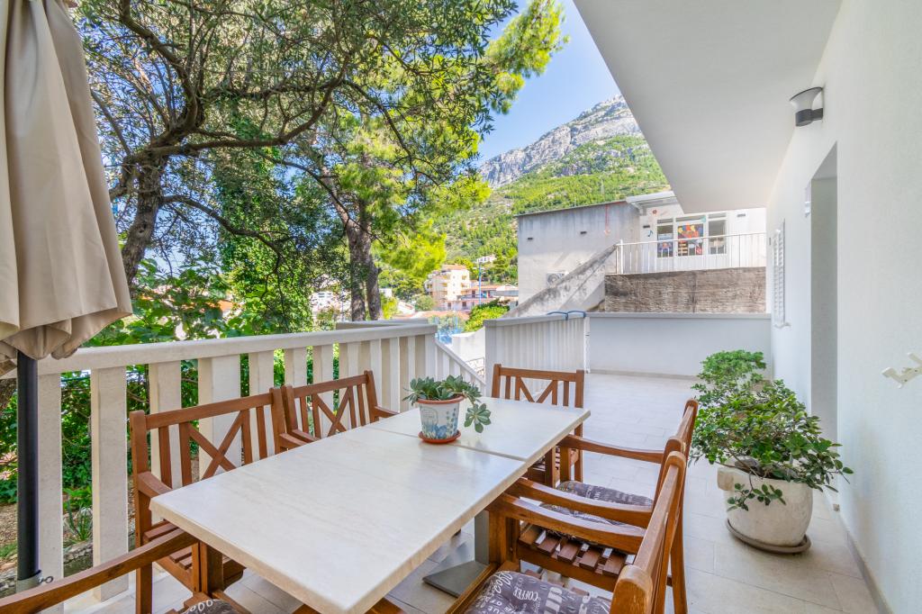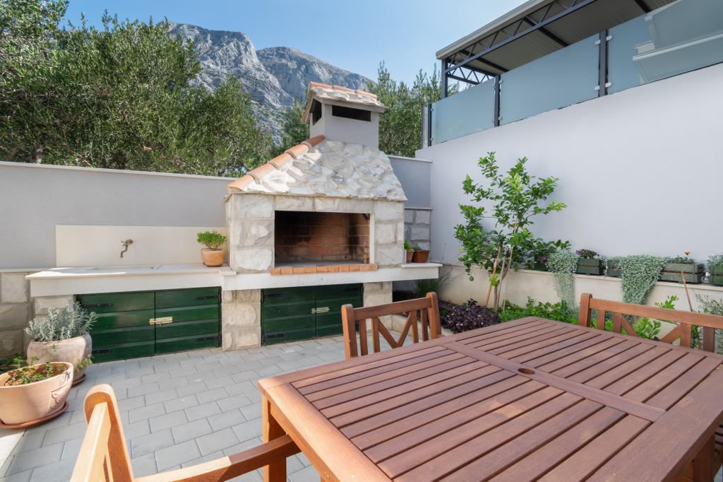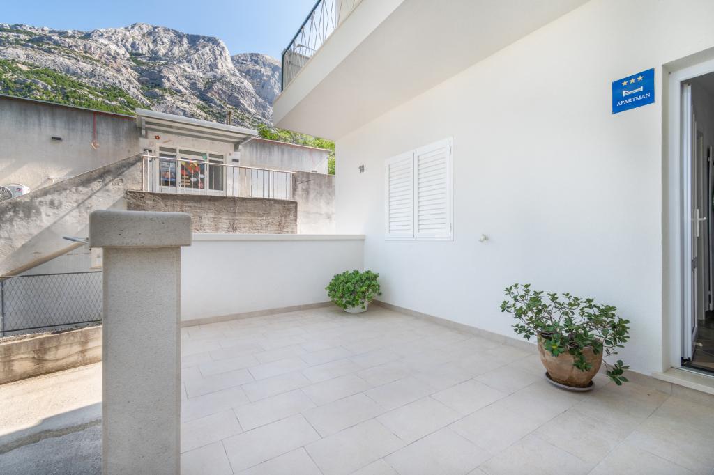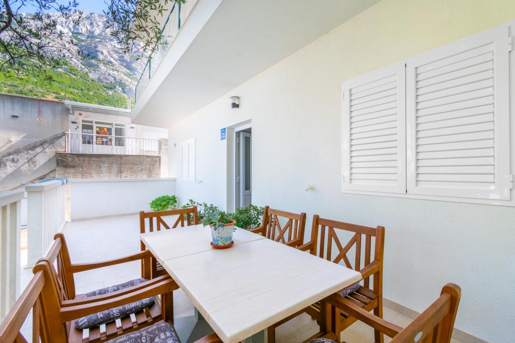 Un apartament cu trei camere spațios și recent renovat (6+1) este situat în frumosul oraș Baška Voda, la poalele Biokovo. Apartamentul are 2 camere spatioase cu pat dublu, si o camera cu pat dublu si pat suplimentar, 2 bai, o bucatarie moderna si utilata si o terasa spatioasa cu vedere la Biokovo si la mare. Apartamentul contine tot ce ai nevoie pentru o vacanta fara griji, placuta si linistita: terasa mare, aer conditionat, wi-fi, LCD/SMART TV, masina de spalat rufe, gratar, loc de parcare, lenjerie de pat, prosoape. La doar câteva minute de mers pe jos se află o piață, o brutărie, o măcelărie, un oficiu poștal, o farmacie, cafenele și plaje. Centrul orașului Baška Voda este la doar 5 minute de mers pe jos de apartament, cu o gamă largă de restaurante, facilități de catering și magazine de suveniruri. Tot vara există o ofertă bogată de sporturi adrenalină, (jet ski, sup board, parasailing) divertisment pentru cei mai tineri (nou și atractive hidrobiciclete, semisubmarin), șezlonguri. Datorita insasi locatiei apartamentului si a proximitatii acestuia de centru, nici macar nu aveti nevoie de masina in timpul anului.