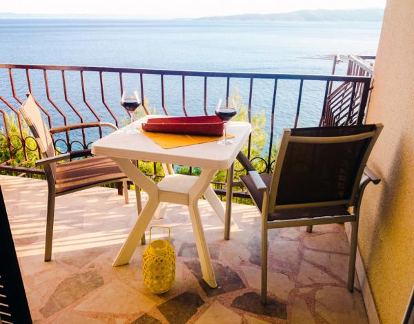 Studio Apartment Ujević este situat în zona rezidențială din Baška Voda - o zonă numită Rogač, înconjurată de vile moderne și case de familie. Ne aflăm deasupra celebrei plaje Ikovac. Garsoniera este potrivită pentru vacanțe în familie, vacanțe romantice și pentru tineret. Apartamentul are un balcon cu vedere excepțională la mare și insulele din arhipelagul central Dalmației. Apartamentul a fost complet renovat si utilat complet. Suntem departe de agitația orașului, zgomot și forfotă.... O vacanță plăcută este garantată de mulți ani de turism. Suntem aici pentru tine din 1982. Vino să vezi singur, și mai presus de toate - odihnește-te!!! La plajă se ajunge pe scări. Familia Ujević