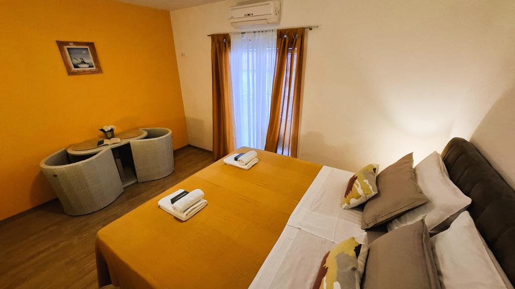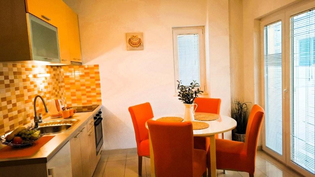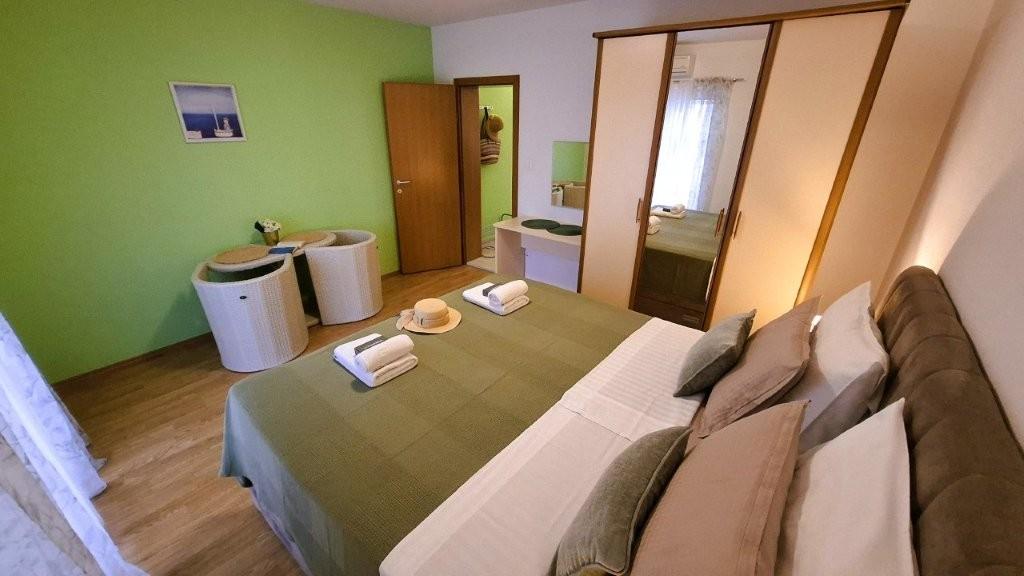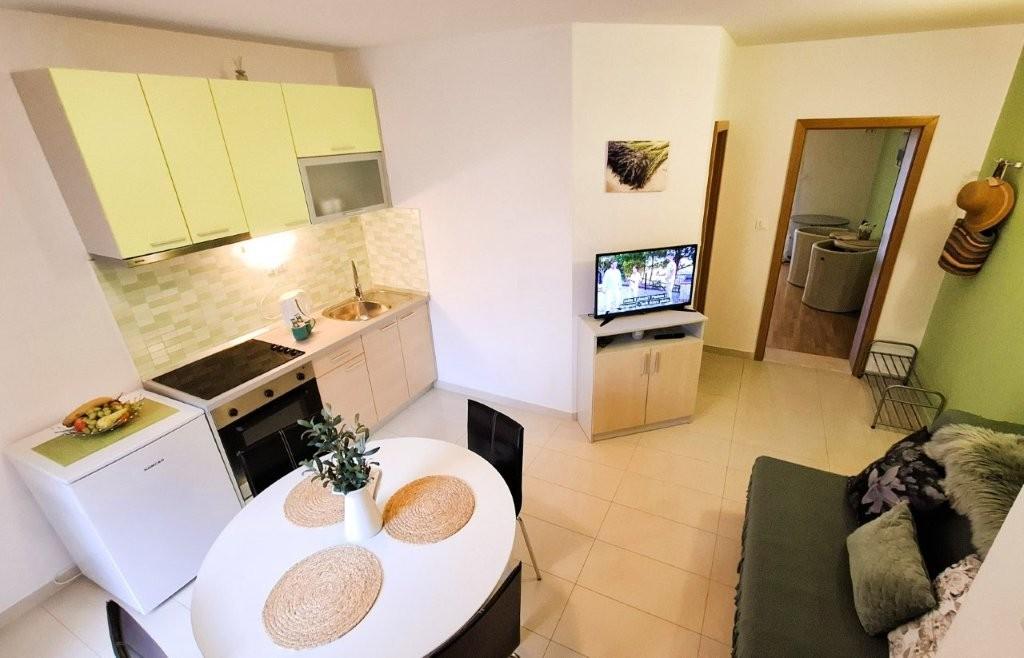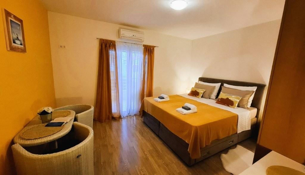 Apartamentele Harmonia modern echipate sunt alegerea perfectă pentru o vacanță confortabilă în familie sau pentru cuplurile care caută cazare confortabilă în apropierea plajei. La aproximativ 200 de metri de plaja Nikola, într-o zonă atractivă din Baška Vodă și nu departe de centru, cu o vedere frumoasă laterală a mării și a muntelui Biokovo. Oferim cazare în apartamente verzi și portocalii, destinate 2 adulți cu 2 copii mici și într-un apartament turcoaz pentru 2 adulți cu ev. 1 copil. Fiecare apartament este de 40m2, are un dormitor mare, zonă de living care include o bucătărie complet utilată, masă și scaune și o canapea extensibilă, baie și terasă. Apartamentele verzi și portocalii sunt situate la primul etaj al casei de familie și au balcoane mari, cu vedere la mare, în timp ce apartamentul turcoaz este situat la subsolul casei, fără vedere la mare, cu o terasă mare și scaune. Fiecare apartament este complet echipat, oferind curățenie și culori strălucitoare, care cu siguranță te vor face să te simți confortabil și să ai o vacanță frumoasă.
