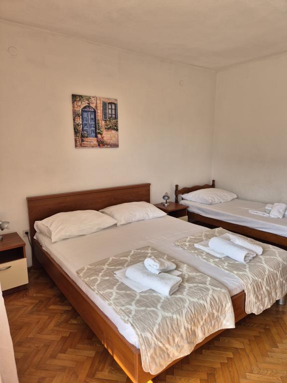 Apartamente complet și modern echipate într-o zonă liniștită din Baska Vodă, parcare și o ofertă completă de tot ce ai nevoie pentru o vacanță plăcută și fără griji (aer condiționat, TV, Internet, mașină de spălat, grătar, ...) într-o atmosferă plăcută a gospodăriei. Aproape de mare (200m) și facilități de divertisment și multe plaje. PARCARE PRIVATĂ este disponibilă pe site. Accesul la internet fără fir este disponibil în întreaga proprietate și este gratuit. Popular pentru familiile cu copii (grădină spațioasă și grădină, locație liniștită). APARTAMENT A: 2 dormitoare spațioase cu balcon (2 paturi duble și 1 pat single) living cu 1 canapea extensibilă, 3 băi, bucătărie cu mașină de spălat vase, sufragerie, vedere la mare. APARTAMENT B: 2 dormitoare (2 paturi duble), 2 băi, 2 balcoane. APARTAMENT C: 1 dormitor (1 pat dublu mare), canapea extensibilă în sufragerie, balcon. APARTAMENT D: 2 dormitoare (2 paturi duble), 1 baie, balcon cu vedere la mare.