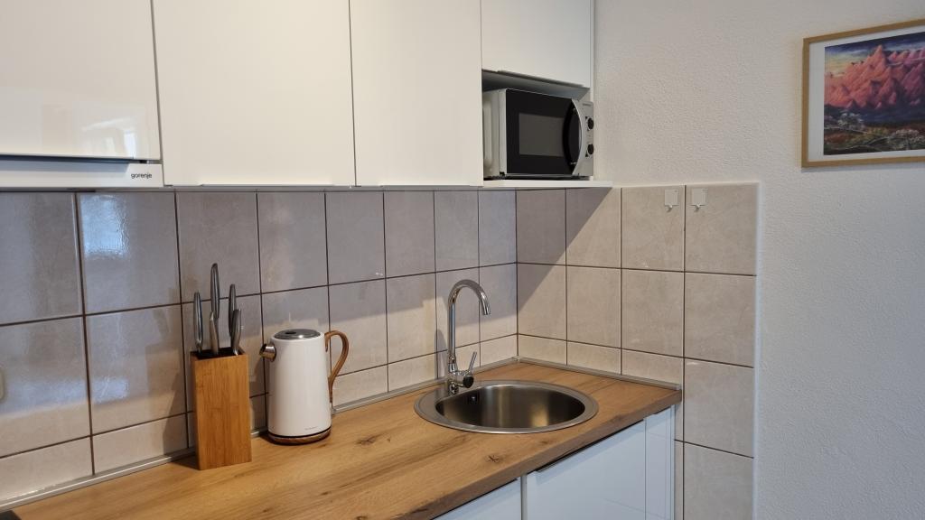 Am stat în cazare timp de 10 zile. Pot spune că gazda este o doamnă minunată! Amabilă, drăguță! Ne-a întâmpinat cu brandy de casă. Aproape în fiecare zi îi oferea fiicei sale un fursec, o tabletă de ciocolată și o bucată de fruct. Cazarea este îngrijită și curată! Bucătăria este poate mai bine echipată decât a mea de acasă. Apartamentul are uscător de păr, masă de călcat, fier de călcat, chiuvetă. Mașina noastră a fost parcată în curtea vilei, la umbră. Marea este la doar 200 m distanță, la fel și magazinul. Konzum sau Tommy sunt la fel de departe dacă aveți de gând să faceți cumpărături sus sau jos la mare. Toate recomandările sunt. Sper că la un moment dat vom reveni la Baške vode și, dacă vom reveni, cu siguranță vom reveni la mătușa Neva.