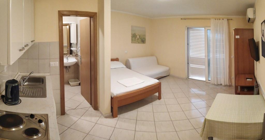 Proprietarii excitați ne-au întâmpinat cu o bere rece. Proprietar Ante servește cel mai bun pește la grătar, desigur, contra unei taxe mici. Camerele curate și spațioase. Aș putea folosi un dulap suplimentar în camera mare. Cazare lângă centru și plajă cu pietriș. Literal, un minut pe scări. Un mic dezavantaj este mașina de pe stradă ceva mai departe, dar proprietarul este fericit să ajute la bagaje. Locația cu adevărat excelentă compensează acest lucru. Vă recomandăm o plimbare de-a lungul promenadei până la Brela.