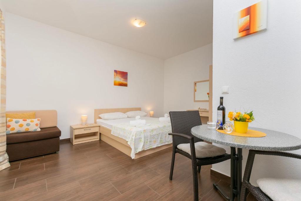 Taxa de rezidenta este inclusa in pret.Am stat într-un apartament studio +1. Apartamentul este la fel cum se arată în fotografiile .. Suntem foarte incantati si placut surprins de serviciul .. Apartamentul a fost foarte curat și ordonat. Pur și luminos. Toată lauda pentru un apartament și întreținerea acestuia. Proprietarii, proprietarul și proprietăreasa sunt foarte accesibile, nu intruziv, ei vă va ajuta întotdeauna dacă ai nevoie de ceva ... balcon în apartament a fost frumos, punctul de vedere de la ea este o încântătoare și magic. Ne-am bucurat petrece noaptea pe ea .. Baska Voda este un loc frumos, un loc cu suflet, relaxare pentru trup și suflet. Atat de calm și liniștit ... Suntem incantati si incantati .. recomand tuturor, Baska Voda și Villa Ancora, nu vei regreta!