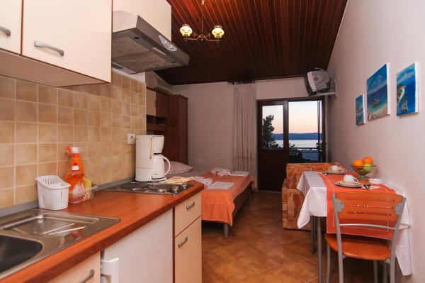 Oameni minunați, suflete cordiale, profesioniste, artistice Apartamentele sunt curate, ordonate, cu o priveliste minunata si preturi corecte. Sunt in asa loc incat chiar si cand este +40 si fara aer conditionat este placut. Plaja este la două minute. De asemenea, este aproape de Baška voda și Brela. Nu sunt dealuri, ci doar câteva scări (care au o lumină cu senzor, nu te lăsa să te sperie, nu este atât de dificil pe cât ar părea. Am recomandat deja prietenilor... Cu siguranta vom mai veni