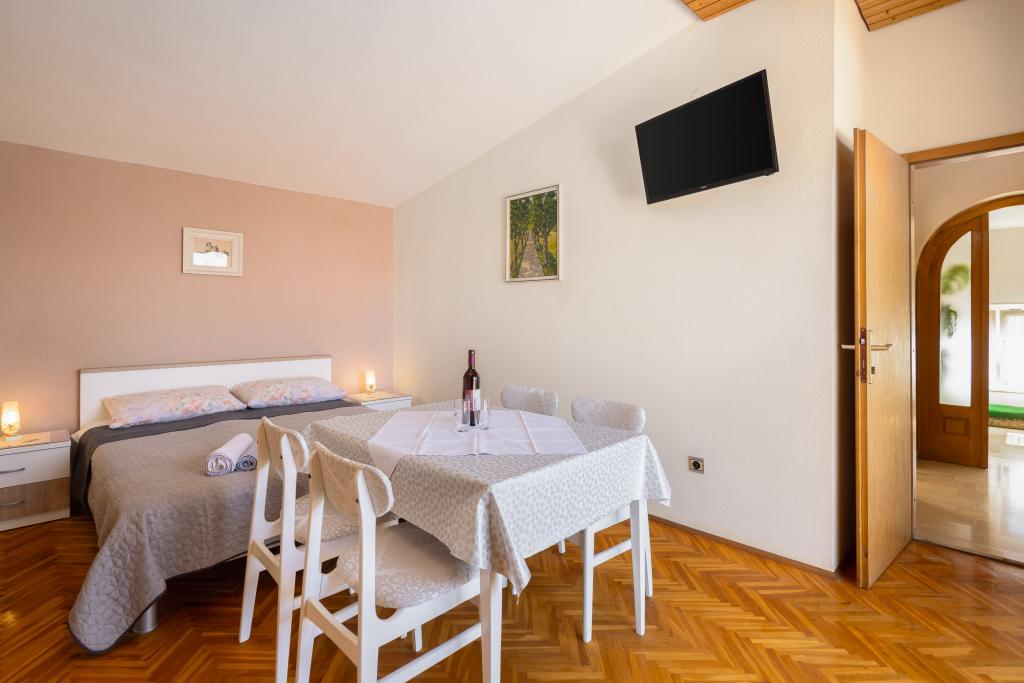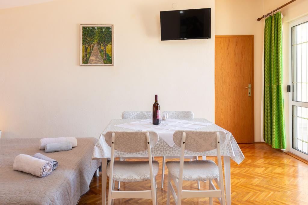 Situate într-o zonă liniștită din Baška Voda, aceste apartamente oferă cazare confortabilă și practică, la aproximativ 400 m de plajă. Ideale pentru cupluri, familii sau grupuri mici, proprietatea include încă un apartament spațios cu două dormitoare și două băi și o unitate mai mică, potrivită pentru 2 adulți și un copil. Ambele apartamente au un design funcțional, bucătării utilate, camere de zi confortabile și spații exterioare, inclusiv un balcon privat și acces la o terasă comună cu grătar. Oaspeții au, de asemenea, parcare privată și un mediu liniștit, aproape de toate facilitățile. O alegere ideală pentru un sejur relaxant și lipsit de griji în Baška Voda, cu personal disponibil pe tot parcursul sejurului.