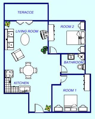 Apartament pentru patru persoane, cu două paturi suplimentare (60 m2)