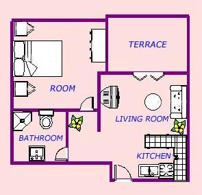 Apartament pentru două persoane, cu două paturi suplimentare (45 m2)