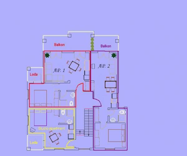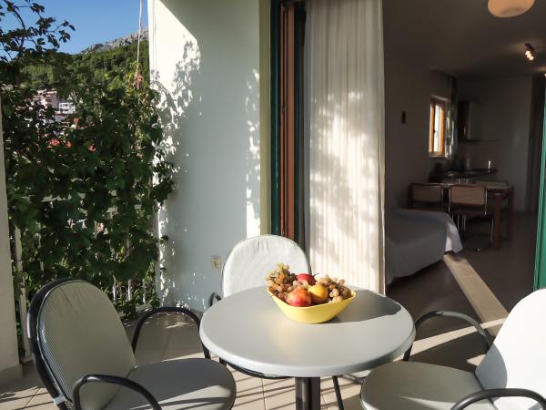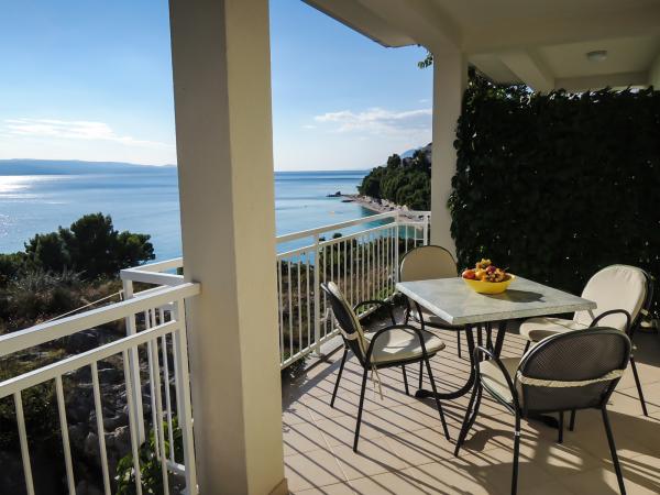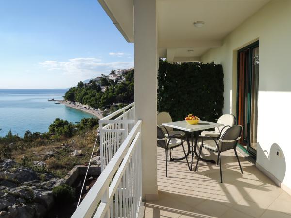 Apartamente cu vedere la mare, salarii, și insule, este situat la primul etaj al unei case situate într-o zonă liniștită din Baska Voda pe un mic deal numit Gradina 20 m deasupra nivelului mării și la 30 m de mare, la 2 minute -3 de cea mai frumoasă plajă și 5 minute de centrul orașului Baska Voda. Parcare privată în fața casei.