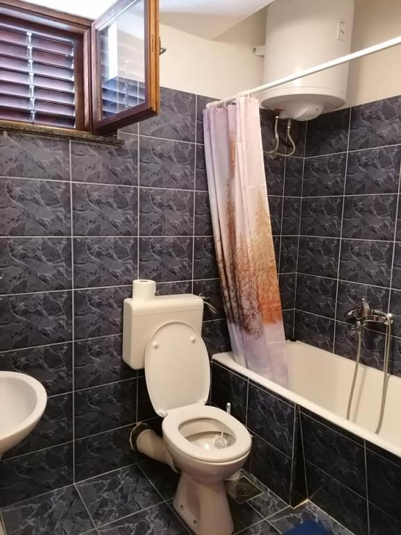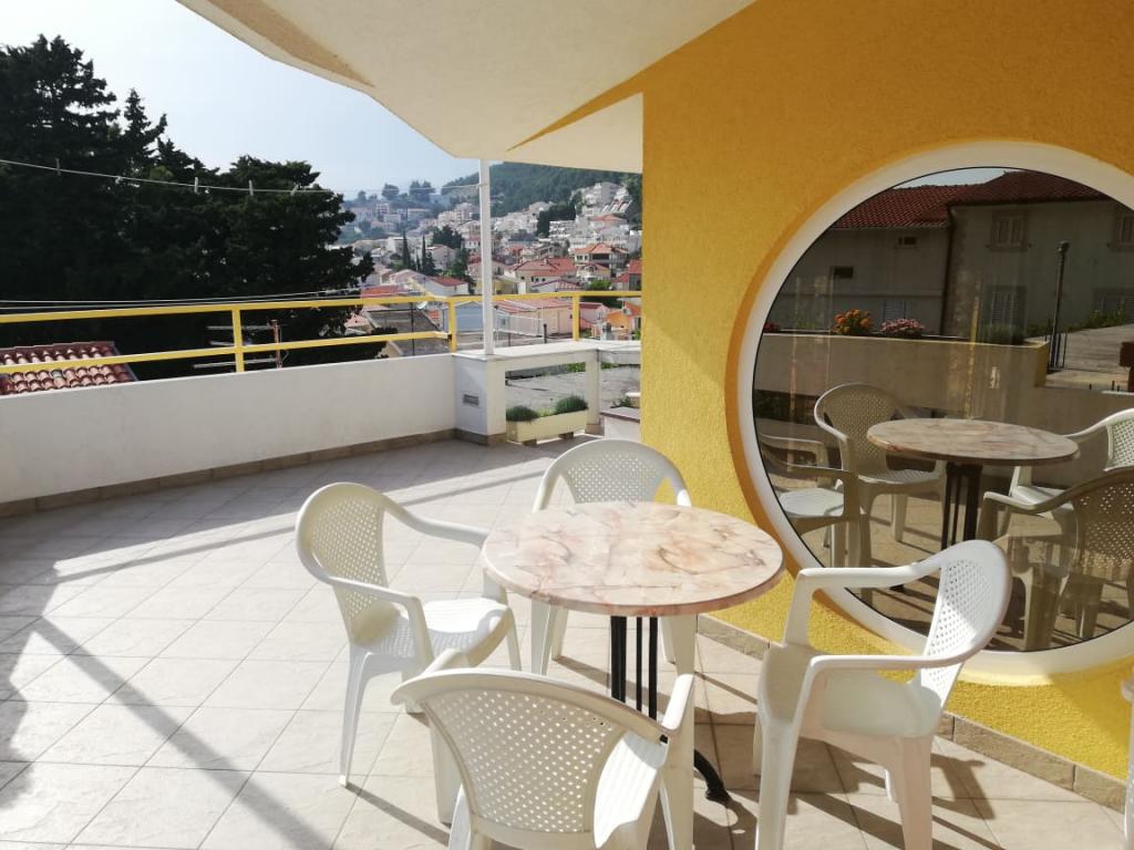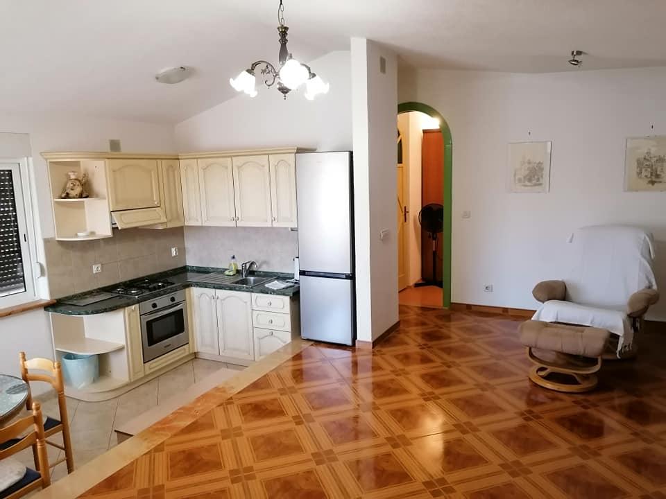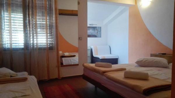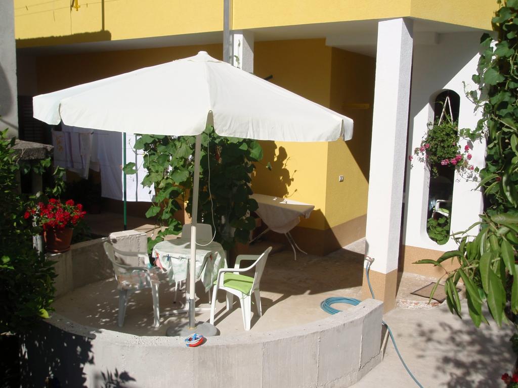 . Apartament, Unitatea de cazare este la primul etaj. Cuprins: Două dormitoare - unul triplu și unul dublu - fiecare cameră are propriul duș WC, TV, aer condiționat, frigider. Apartamentul are, de asemenea, o bucătărie și o terasă spațioasă / de-a lungul. 12 m /. Apartamentul este complet utilat cu lenjerie de pat, prosoape, bucatarie cu kit de bucatarie, wi-fi, parcare rezervata. Distanta de la plaja este de 150 m. Deoarece apartamentul se afla in centrul satului, toate facilitatile de servicii necesare; restaurante, cafenele, hoteluri, diverse terase, bancă, oficiu poștal, ambulanță etc ..., sunt situate între 50 și max. 200 m. De asemenea, oaspeții pot oferi biciclete pentru agrement, o barcă de 7 m cu un căpitan pentru excursii de o zi la destinații interesante și pescuit, precum și diverse informații turistice în timpul sejurului. Proprietarul este la dispoziția dumneavoastră.
