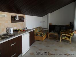 Apartamente complet echipate modern în centrul orașului Baska Voda, dar pe o stradă complet liniștită și liniștită / fără fund. Distanța de la plajă, magazine, centru doar 100 de metri.