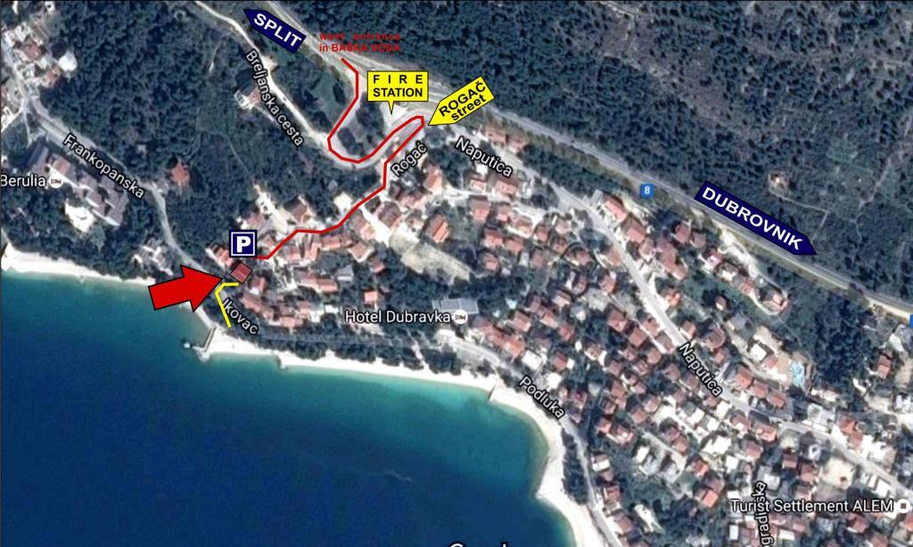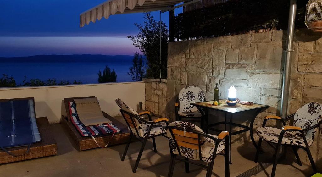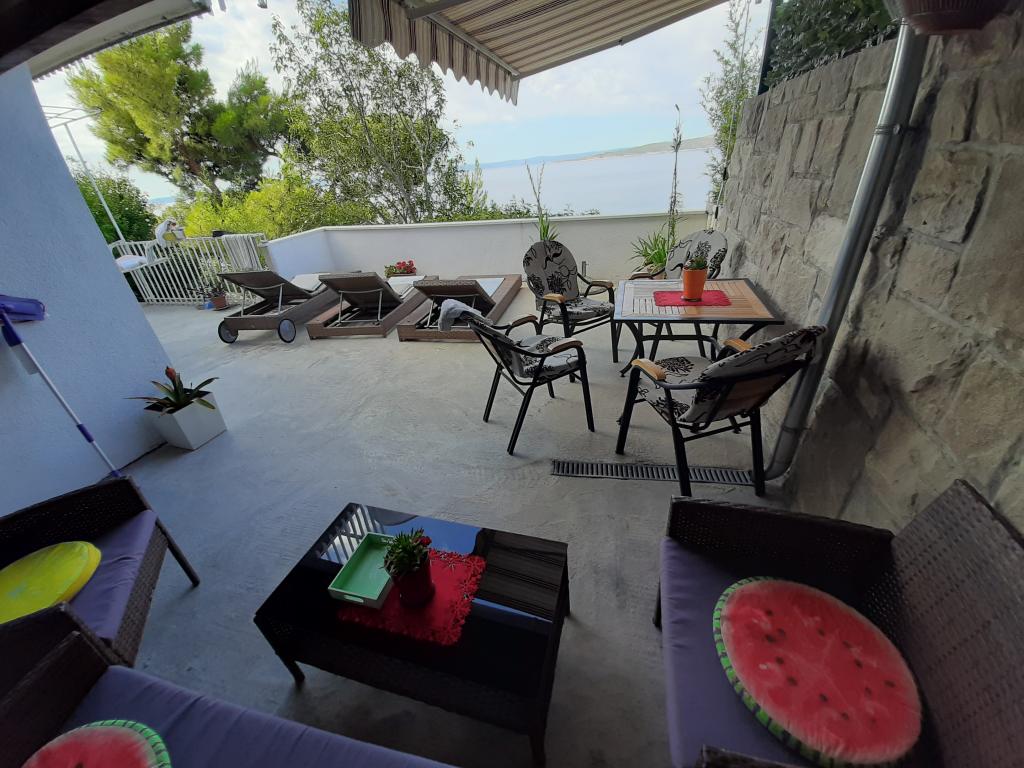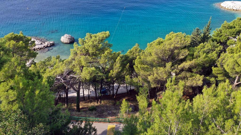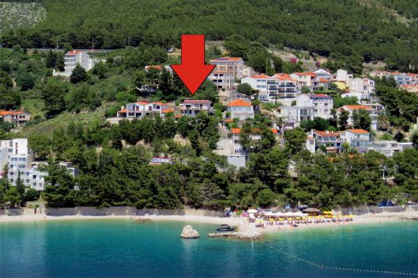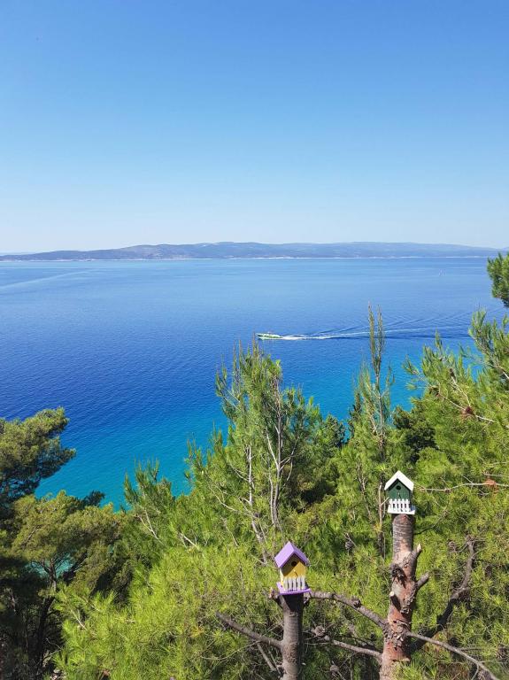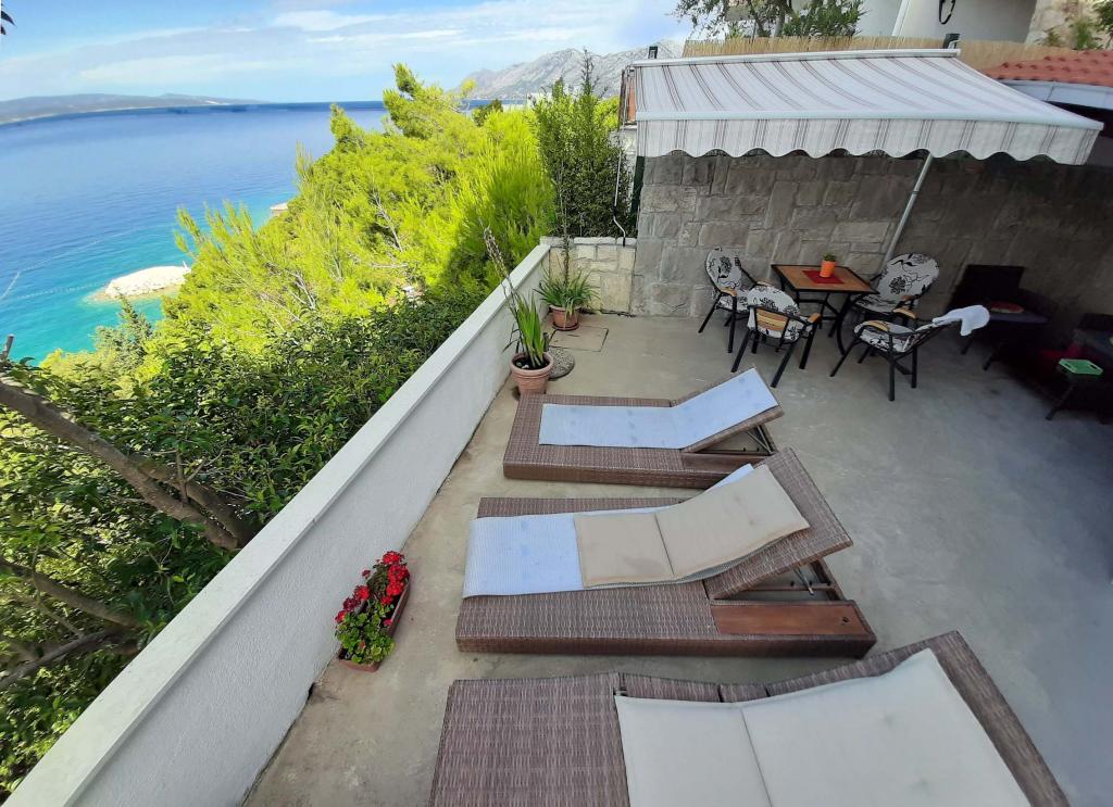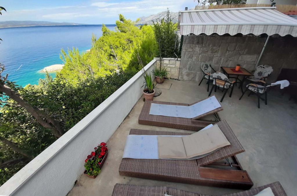 Apartament nou renovat și complet echipat într-o zonă liniștită, între Baska Vodă și Brela, situate în primul rând până la mare, deasupra unei frumoase plaje. Facilitatea este situată la 10 minute de mers pe jos (aproximativ 500 m) de centrul ambelor locuri. Terasă mare cu baldachin și vedere la mare, 2 dormitoare duble, două băi și bucătărie cu acces la terasă. Totul nou. Apartamentul este situat la un etaj separat, cu intrare separată, o grădină mare separată de toți vecinii. Parcare privată la umbra chiar deasupra casei.
