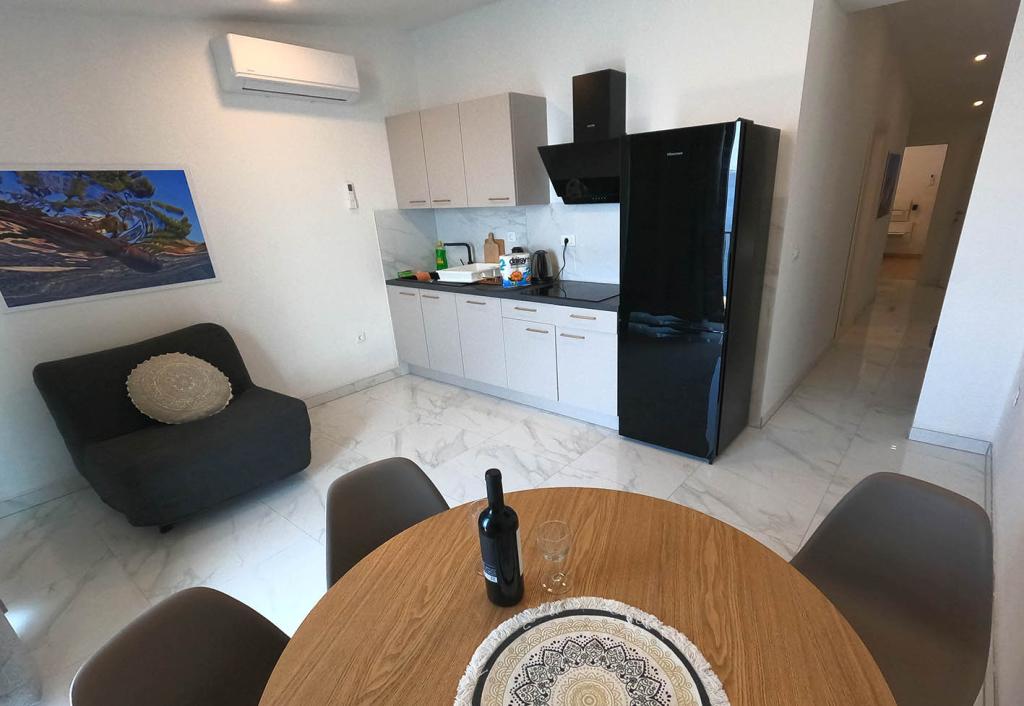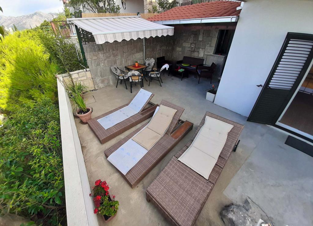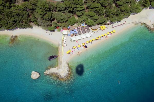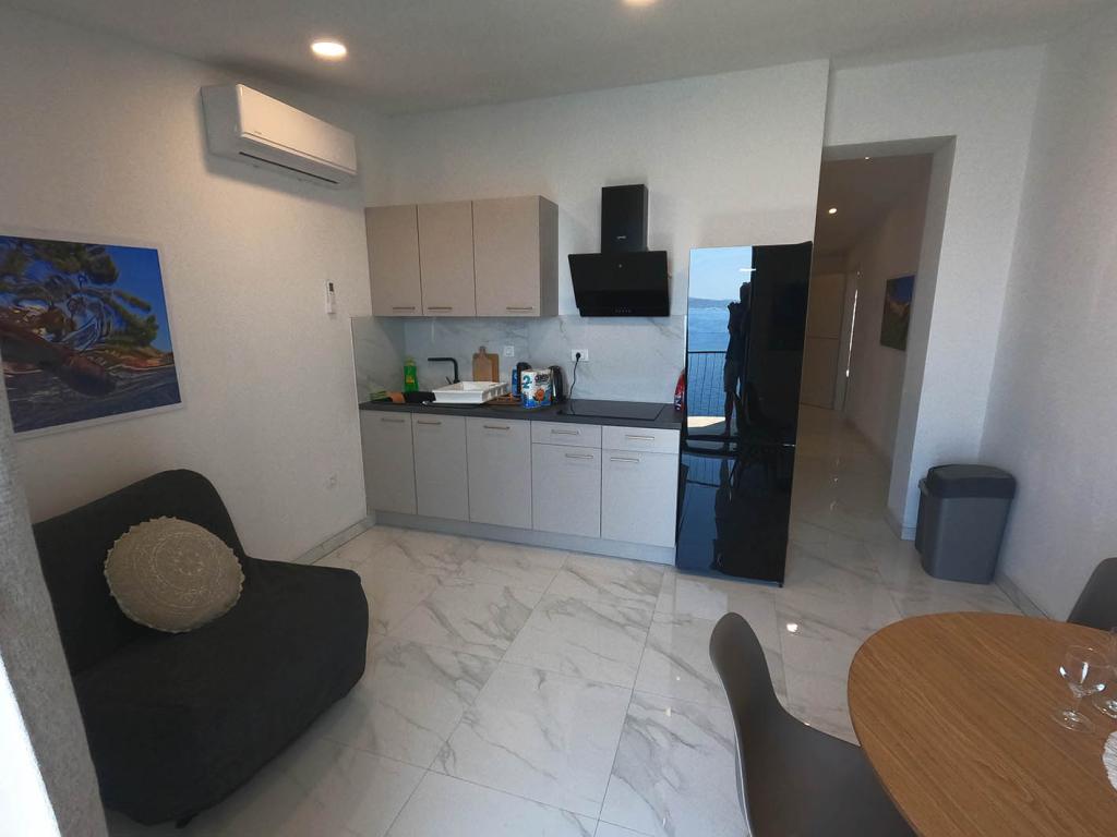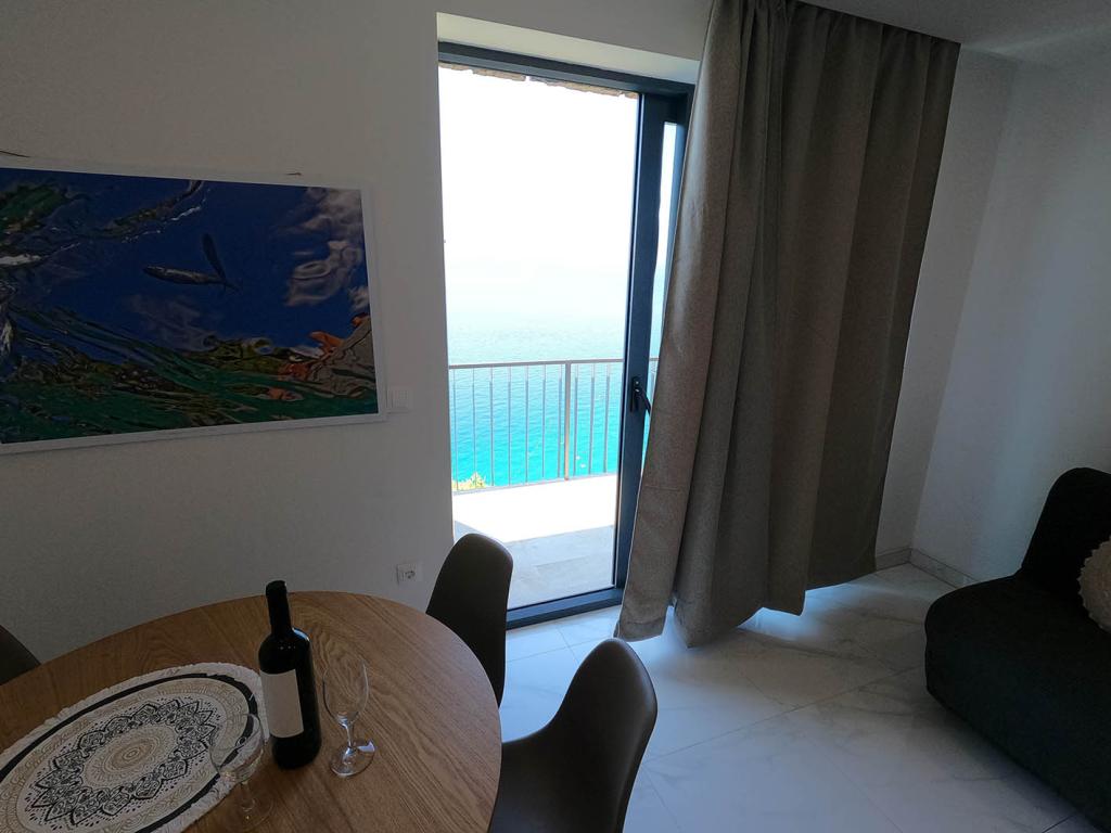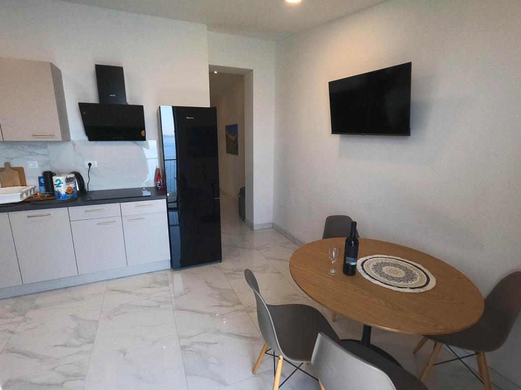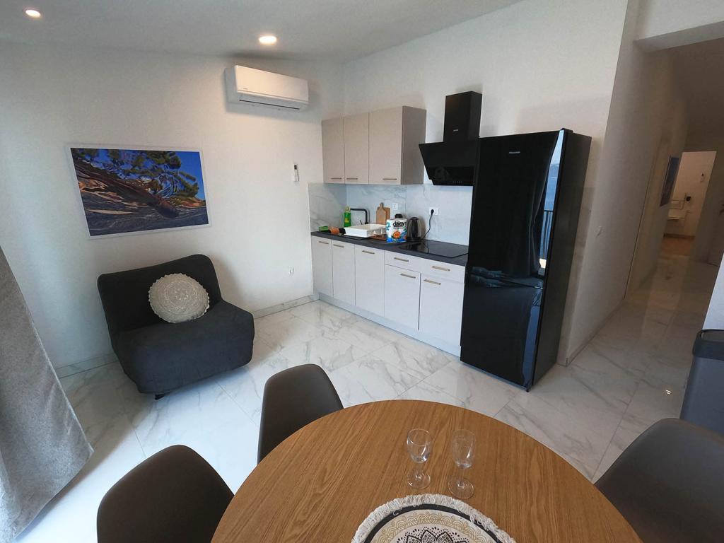 Apartament nou renovat și complet echipat într-o zonă liniștită, între Baska Vodă și Brela, situate în primul rând până la mare, deasupra unei frumoase plaje. Facilitatea este situată la 10 minute de mers pe jos (aproximativ 500 m) de centrul ambelor locuri. Terasă mare cu baldachin și vedere la mare, 2 dormitoare duble, două băi și bucătărie cu acces la terasă. Totul nou. Apartamentul este situat la un etaj separat, cu intrare separată, o grădină mare separată de toți vecinii. Parcare privată la umbra chiar deasupra casei.