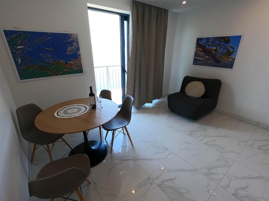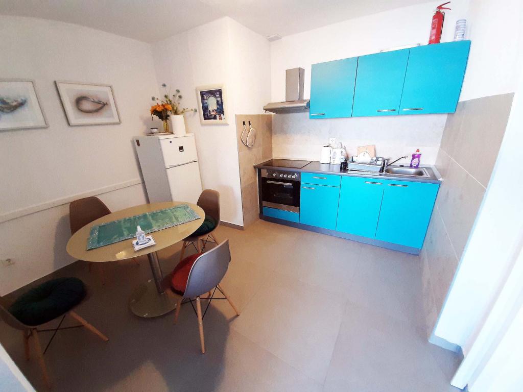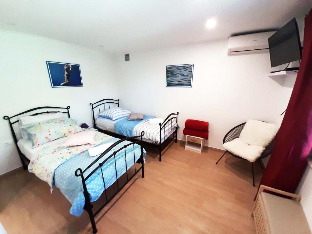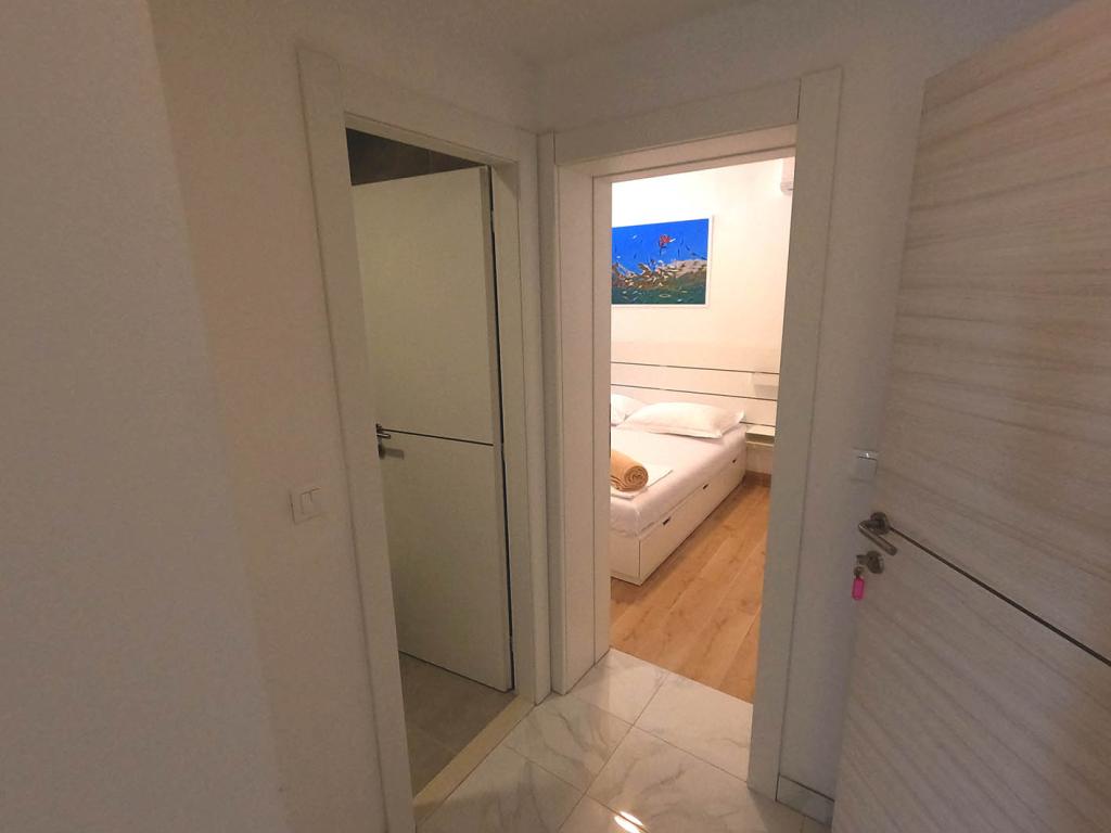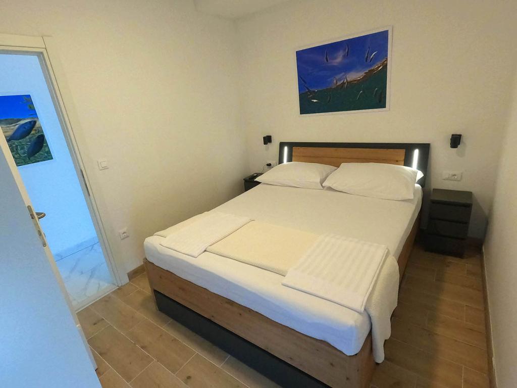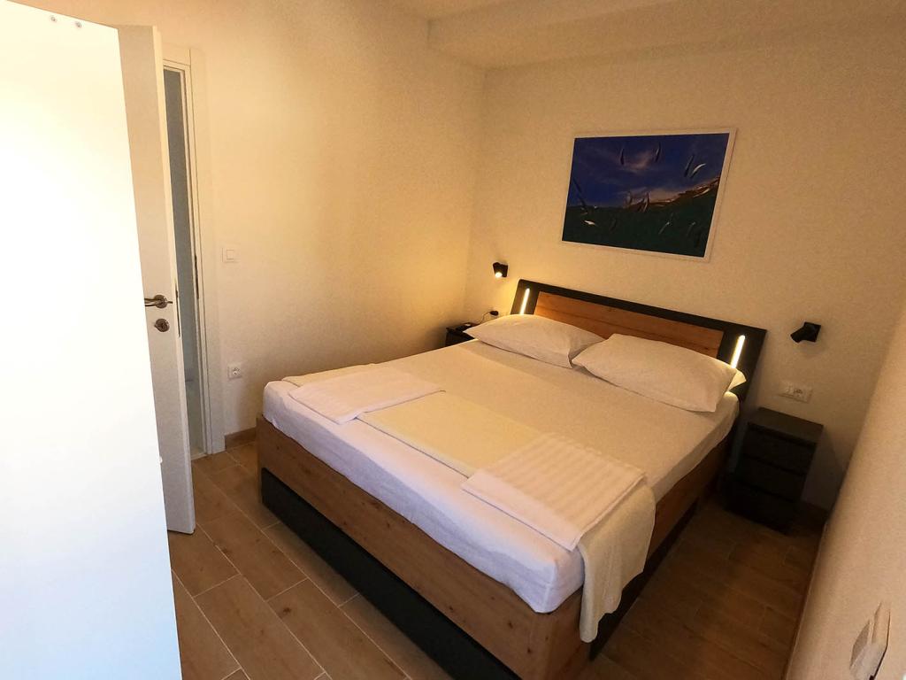 Apartament nou renovat și complet echipat într-o zonă liniștită, între Baska Vodă și Brela, situate în primul rând până la mare, deasupra unei frumoase plaje. Facilitatea este situată la 10 minute de mers pe jos (aproximativ 500 m) de centrul ambelor locuri. Terasă mare cu baldachin și vedere la mare, 2 dormitoare duble, două băi și bucătărie cu acces la terasă. Totul nou. Apartamentul este situat la un etaj separat, cu intrare separată, o grădină mare separată de toți vecinii. Parcare privată la umbra chiar deasupra casei.