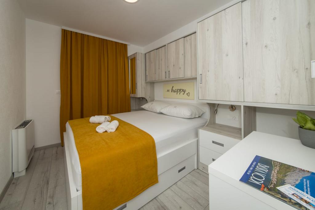 Apartamentele Spiline sunt situate într-o zonă liniștită din Baška Voda, înconjurată de verdeață, la numai 400 de metri de centru și plajă. Apartamentele sunt apartamente nou construite, decorate conform standardelor. Fiecare dintre apartamente are un living cu bucătărie, dormitor, baie și balcon sau terasă. sunt dotate cu aer condiționat, TV și parcare pentru fiecare apartament. Capacitatea fiecărui apartament este un dormitor cu 2 paturi și 2 paturi suplimentare în sufrageria de pe canapea extensibilă. La serviciu este întotdeauna prietenos personal care vorbește limba engleză. Curățenia și utilitatea sunt întotdeauna în primul rând. Apartamentele Sunce și Sea vă așteaptă.