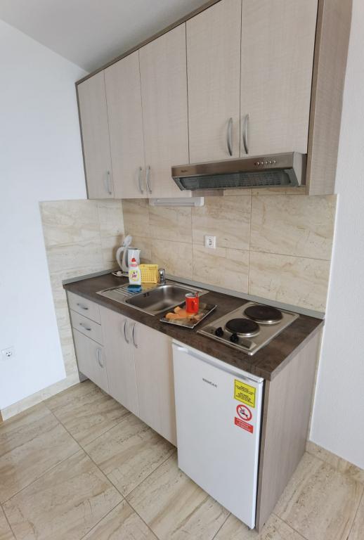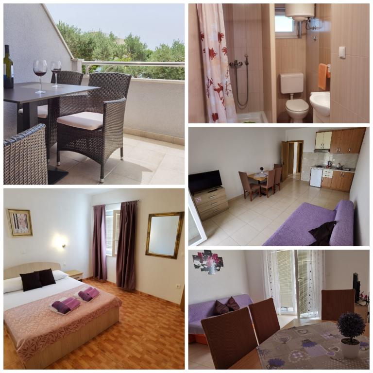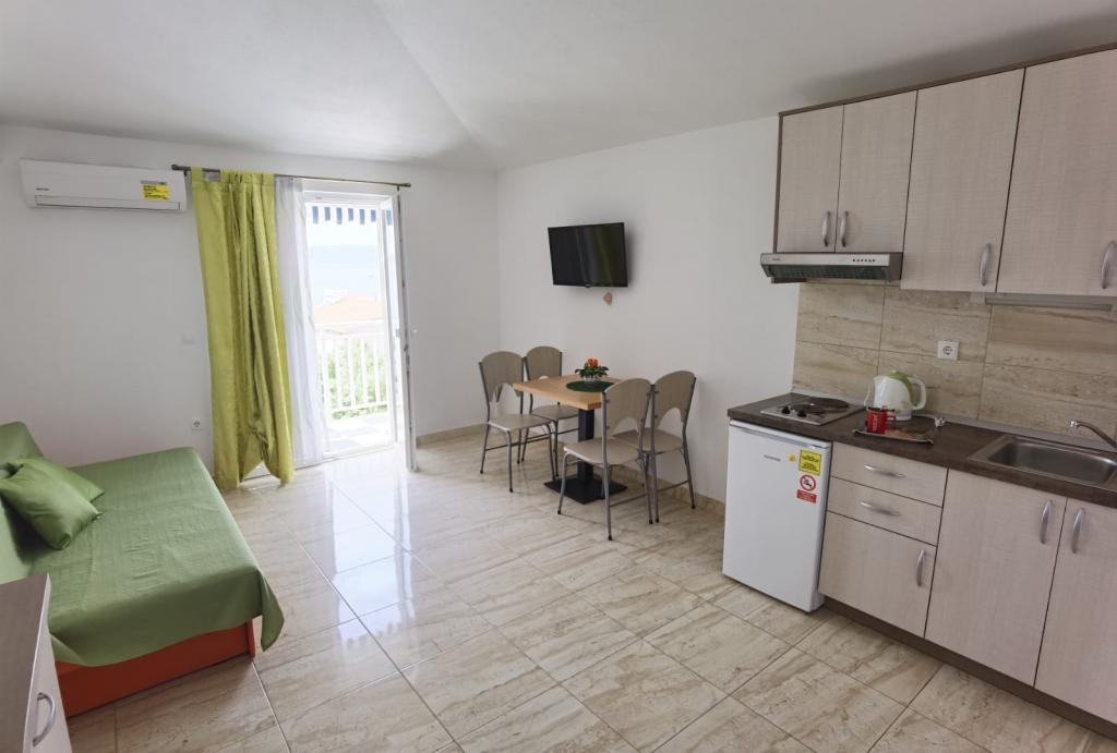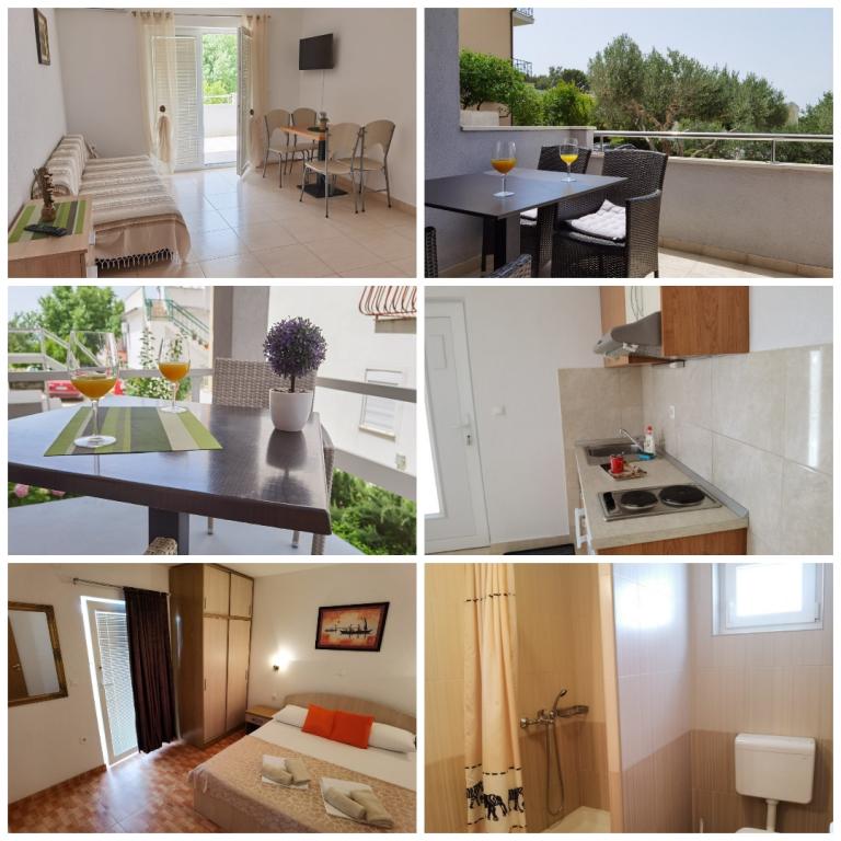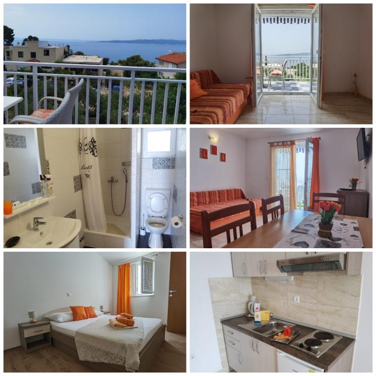 Apartamente complet echipate într-o zonă liniștită din Baška Voda. Este la o plimbare de un minut până la plajă și la mare. Alături de mare și plajă, există vederi frumoase asupra insulelor Brač, Hvar... Muntele Biokovo. Bine ați venit și vă dorim un sejur plăcut.