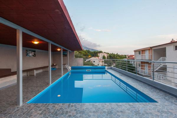 Apartamentele sunt complet utilate, baile/toaletele tocmai au fost renovate. Apartament mare pentru 6 + 1 persoana are doua bai/toalete si este potrivit pentru familii numeroase. Toate apartamentele au terase/balcoane cu vederi frumoase la mare. Avem suficiente locuri de parcare pentru toti dragii nostri oaspeti, in pret oferim posibilitatea folosirii piscinei si gratarului.