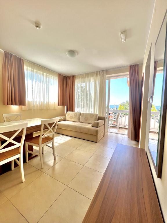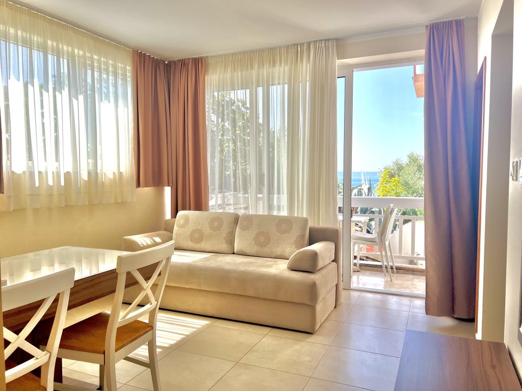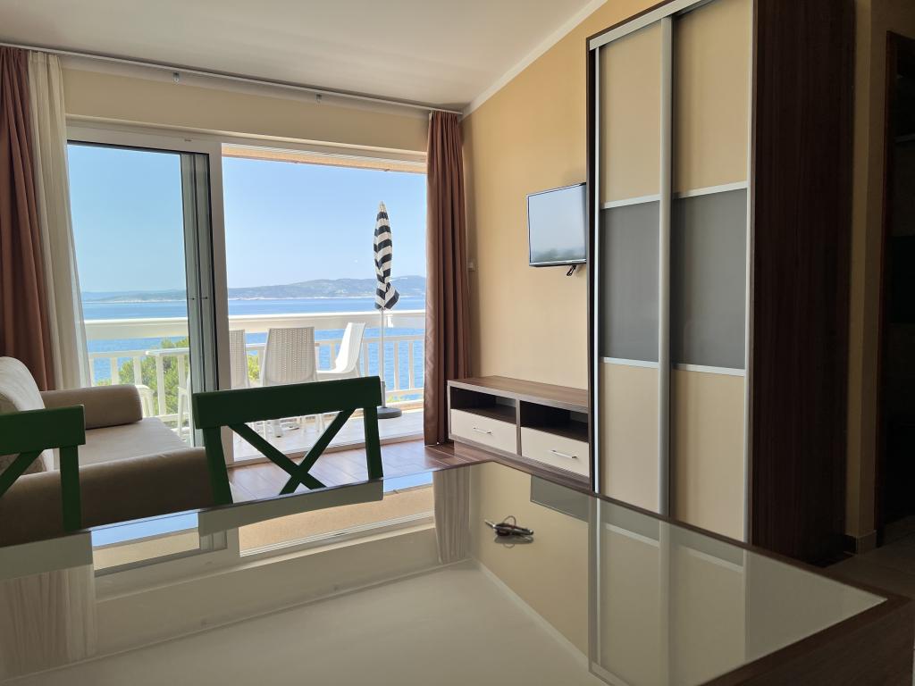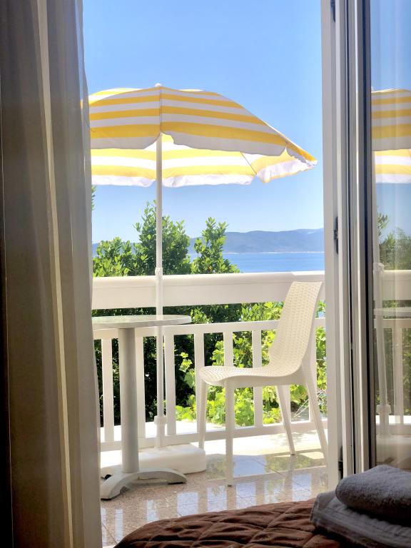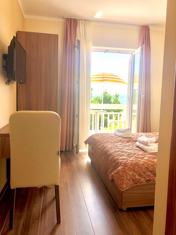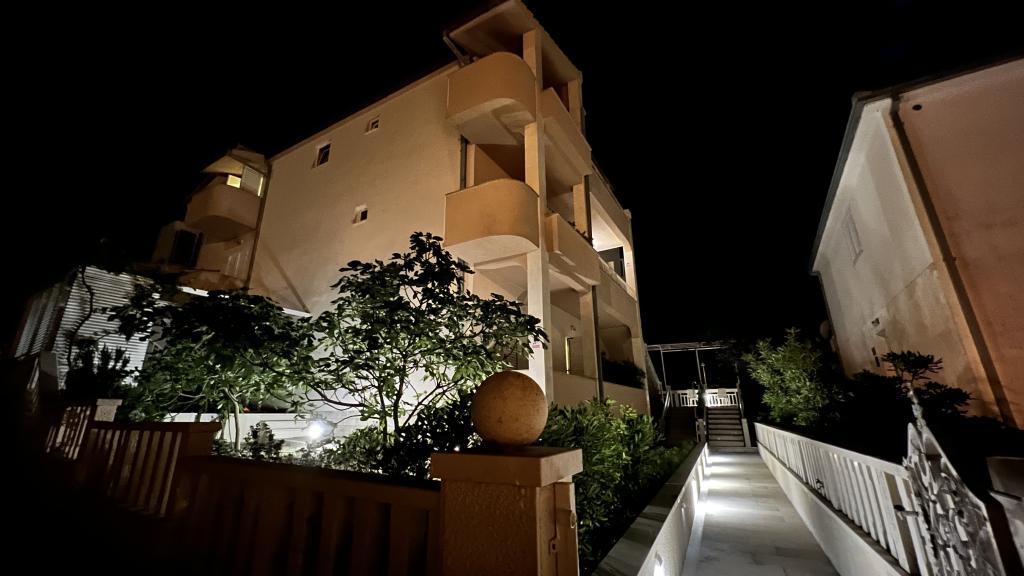 Taxa de rezidenta este inclusa in pret.Toate camerele și apartamentele sunt mobilate cu gust și fiecare cameră/fiecare apartament are propriul balcon. Fața casei are vedere la mare. Fumatul este interzis în toate camerele și apartamentele. Animalele de companie, din păcate, nu au acces! Dispunem de 3 camere duble, care sunt dotate cu urmatoarele: - WiFi - Aer conditionat (partial) - frigider - dus/toaleta - FARA BUCATARI Avem si 4 apartamente cu urmatoarele optiuni: 3 paturi (2 1); de două ori 4 paturi (2 2); 5 paturi (4 1). Sunt dotate cu: - WiFi - Aer condiționat (parțial) - Bucătărie completă proprie - Sufragerie (cu excepția apartamentelor 8 și 10) - Duș/toaletă Servicii suplimentare: - Parcare disponibilă la un cost suplimentar (aproximativ 200 de metri, supravegheată 24 de ore) - Dacă doriți un pătuț gratuit