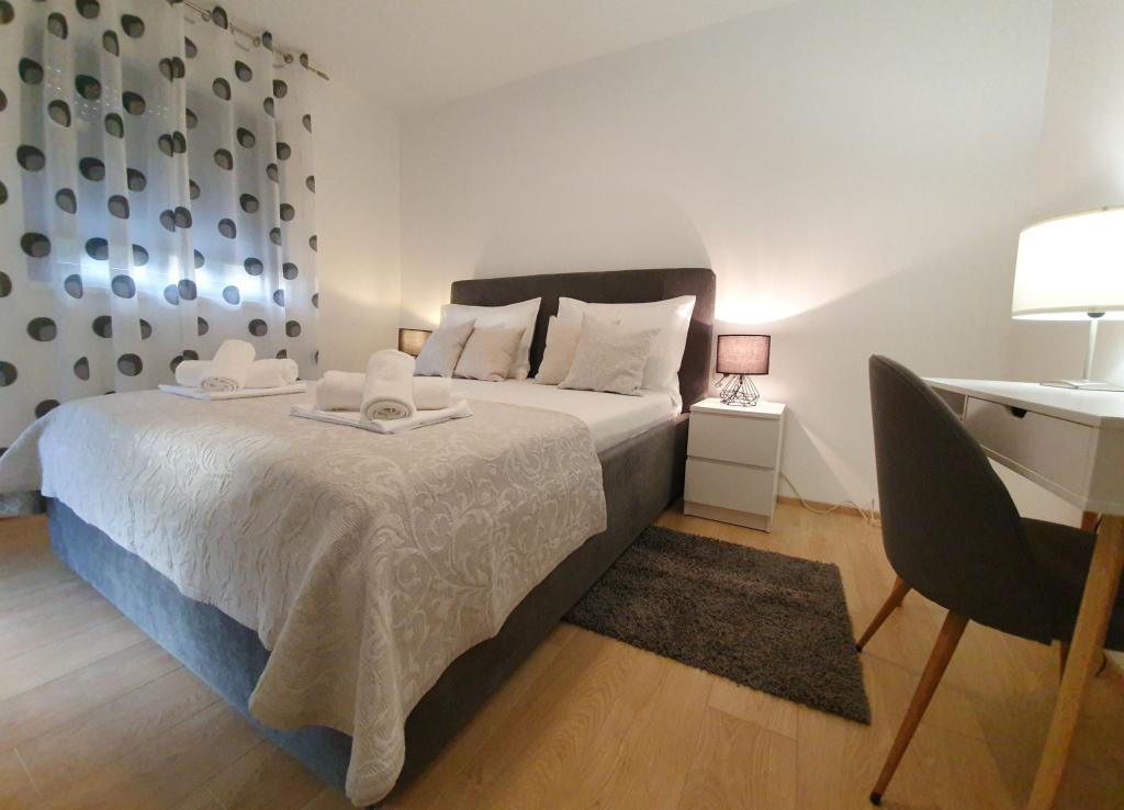 Villa La Vita este o clădire nouă și modernă pentru cazare confortabilă a oaspeților. Toate apartamentele noastre sunt complet echipate modern pentru a oferi oaspeților plăcerea maximă a vacanței.Închiriat avem 6 apartamente: 2 apartamente mari 4 + 2 persoane, apoi 3 apartamente mai mici 2 + 2 persoane. Apartamentele de la etajele 1 și 2 au vedere frumoasă la mare, care se află la 300 de metri sau la câteva minute de mers pe jos. Plaja din Baška Voda este cunoscută pe scară largă pentru frumusețea sa, motiv pentru care a fost încoronată de mai multe ori cu un steag albastru. Există, de asemenea, o piscină mare și foișor situate în curtea vilei. Vă stăm la dispoziție pentru toate celelalte întrebări și informații.