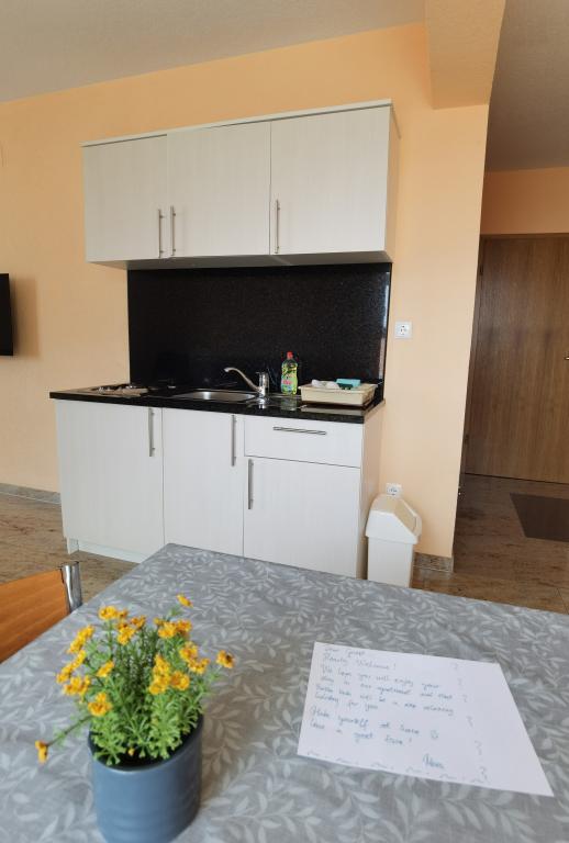Apartamentul a fost minunat: o vedere frumoasă la mare, camere spațioase, o chicinetă foarte bine utilată și un balcon mare. Apartamentul a fost incredibil de curat - nu era niciun fir de praf. Proprietarul a fost foarte prietenos. Am putut face check-in-ul mai devreme - înainte de check-in - după ce apartamentul fusese curățat după oaspeții anteriori. Marea este în linie directă cu plaja, dar cel mai apropiat acces este din păcate pe multe scări, dar puteți coborî direct la plajă și la promenadă cu restaurantele și alte facilități.