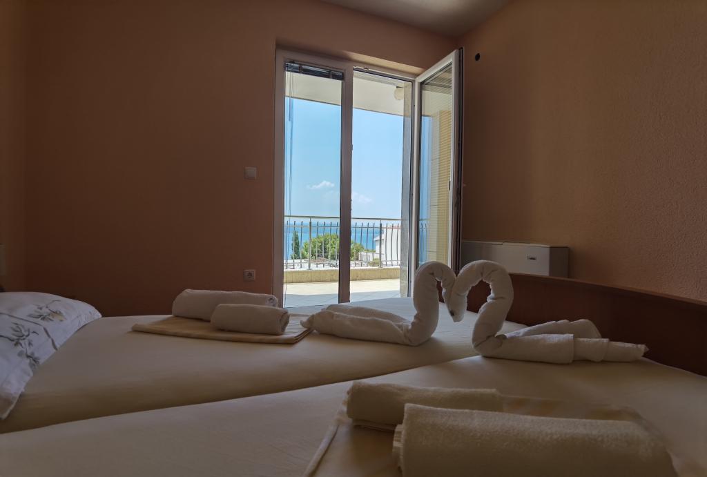 Buna ziua. Confirm parerile foarte bune. Am fost cu o familie de 4 persoane. Chestiuni banale. Pretul de oferit este foarte atractiv. Există parcare sub hotel. Aerul condiționat se răcește instantaneu. Există o chicinetă suficientă. Întregul hotel este curat și renovat - căptușit cu granit. Totul funcționează așa cum ar trebui. Balcon mare. Există o spălătorie - personalul va spăla rufe dacă cereți. Proprietarii sunt drăguți și prietenoși. Atractii: Vederi frumoase noaptea și ziua - marea de sus, luna pe cer și în apă și munții din apropiere. Coborârea la plajă este direct în jos - este mai bună decât arată hărțile. Este un bun punct de plecare - aproape de plaja si de drumul principal, zona linistita. Am vizitat Baška Voda, Omiš și Brela, dar și Promajna sau Makarska. Există o zonă frumoasă acolo. Recomand: Baszka Woda - vedere la munti, la mare, plaja Nicola pentru cei lenesi si promenada, mai ales seara cand luminile sunt aprinse, sunt magazine si baruri, exista un pub cu muzica pentru dans si un ringul de dans. Recomand o croaziera Biba celor care au multa energie – atmosfera grozava, muzica, distractie, mai ales la intoarcere – poti cunoaste oameni foarte draguti. Excursie de după-amiază la Omiš. Pentru cei mai activi - o plimbare pe jos de-a lungul plajelor - tot nu este suficient pentru ochi, de la plaja Nicola la plaja La bomba. Pentru cei cărora le place snorkelingul, le recomand Brela și plajele Podrace, zona din jurul Brela și piatra LaBomba, unde, pe lângă înot, puteți sări și în apă, gastronomia este la îndemână - cel mai bine este să conduceți până la privat. parcare. S-ar putea continua la nesfârșit, de exemplu, plajele fermecătoare dintre vodca Baška și Promajna. Recomand cazarea si imprejurimile. A fost trist să plec.