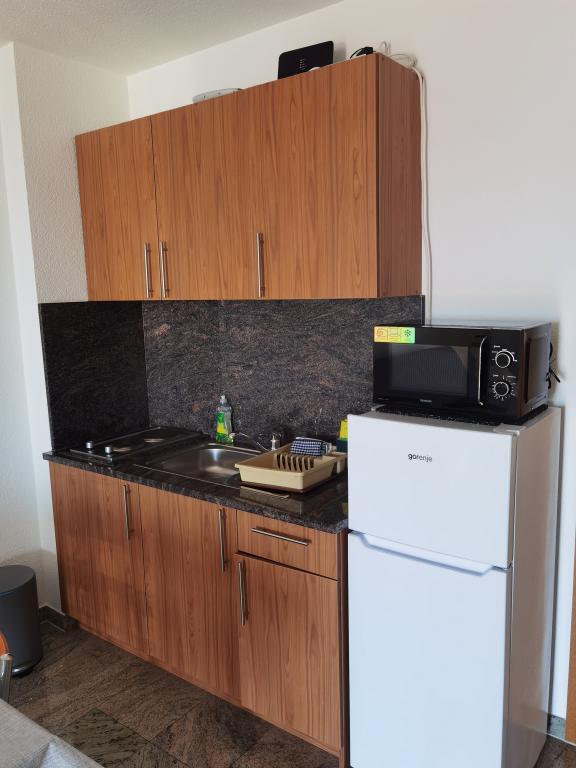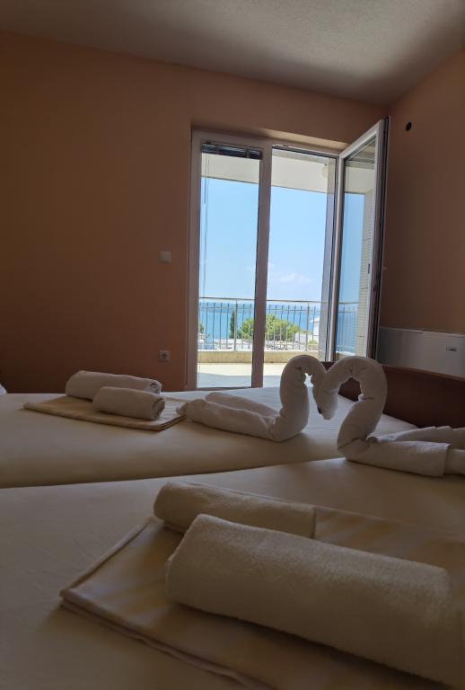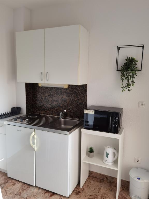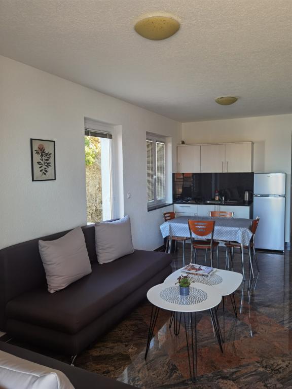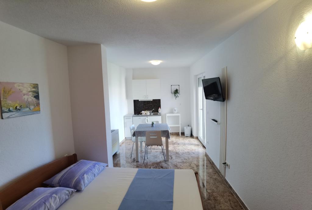 Villa Marić este situată într-o zonă liniștită din Baska Voda, la 200 de metri de mare. Vila oferă o vedere frumoasă la mare, insule și munții din jur. În apropiere există piețe, restaurante și cafenele. Apartamentele spațioase constau dintr-un dormitor dublu, o baie, o bucătărie, o sufragerie și un living. În living există o canapea extensibilă. Apartamentele dotate modern vă fac șederea mai confortabilă: TV prin satelit, WiFi, aer condiționat și ustensile de bucătărie necesare și o terasă cu vedere frumoasă la mare. In fata vilei se afla o parcare spatioasa. Parcarea în garaj poate fi oferită la cerere și la un cost suplimentar. Mediul liniștit din jurul casei asigură liniște față de zgomotul străzii și siguranță copiilor. Personalul prietenos este mereu la dispoziția dumneavoastră. Vă dorim o primire călduroasă și dorim să vă faceți să vă simțiți ca acasă. Sperăm să vă bucurați de apartamentele noastre și să vă bucurați de Baška Voda de neuitat! Așteptăm cu nerăbdare sosirea dumneavoastră!