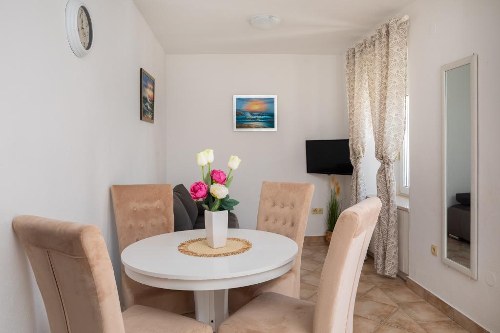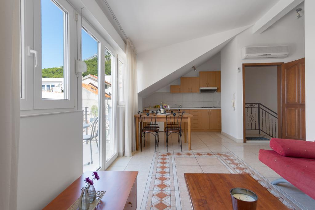 Apartamentul este situat chiar în centrul orașului Baska Voda. Foarte curat și ordonat, cu locuri de parcare. Gazda, Iva, este foarte amabilă și mereu la dispoziția dumneavoastră. Recomand această cazare.