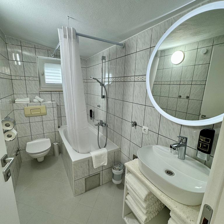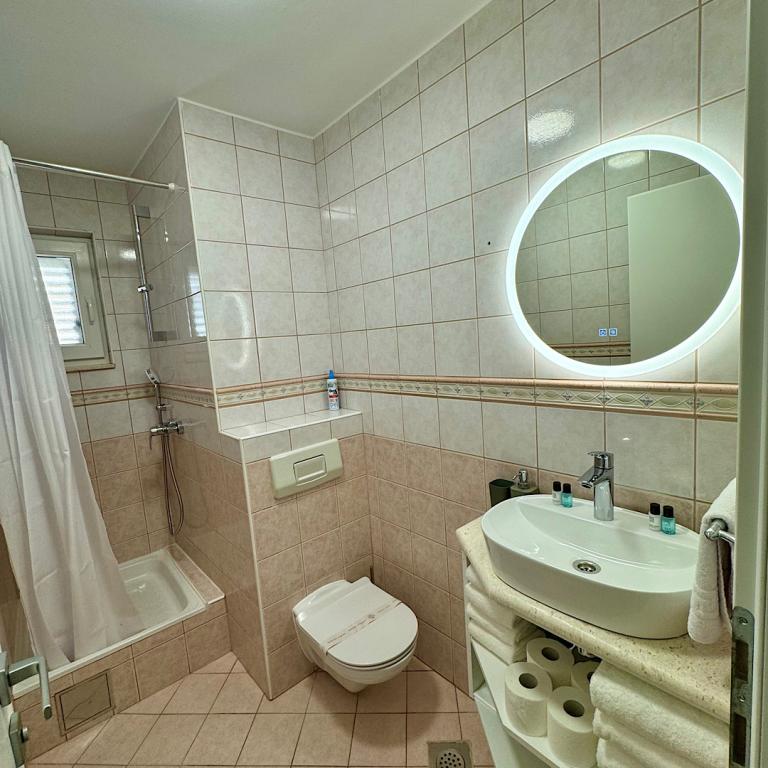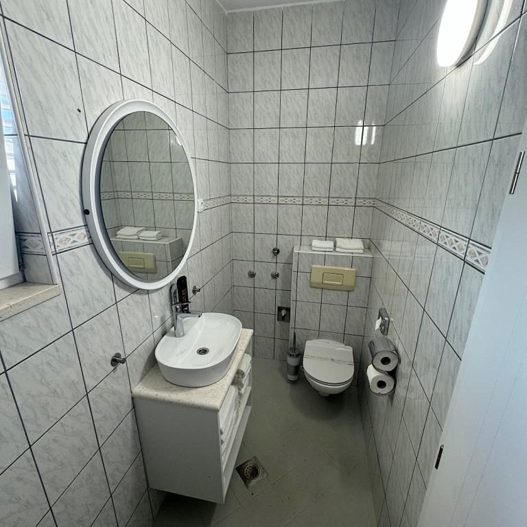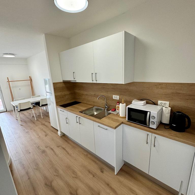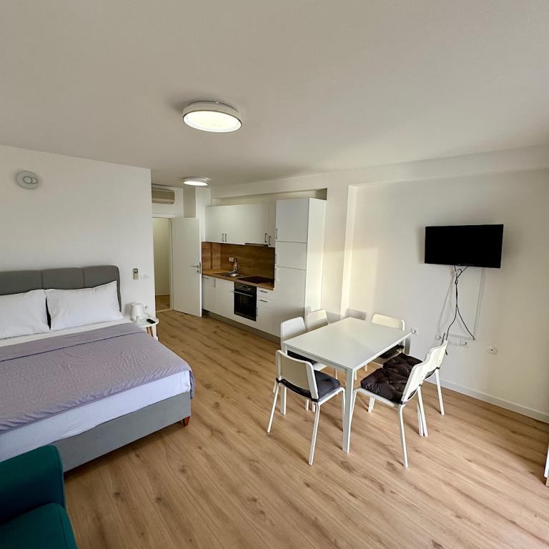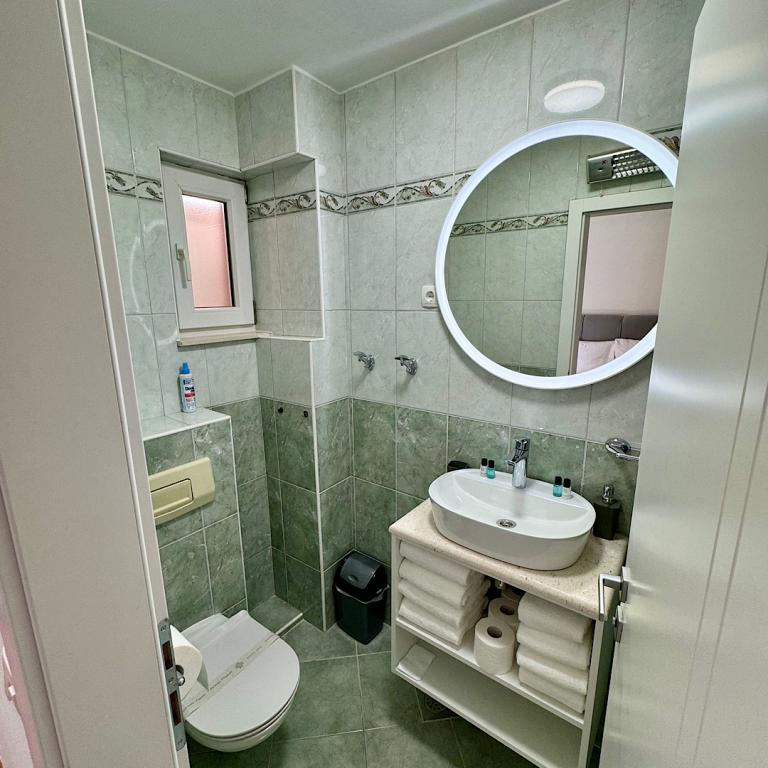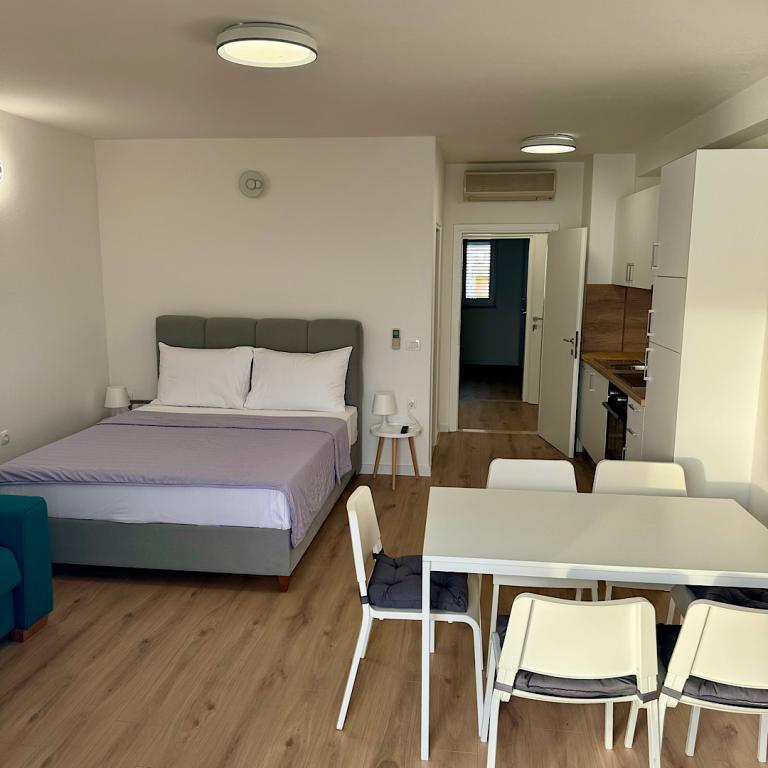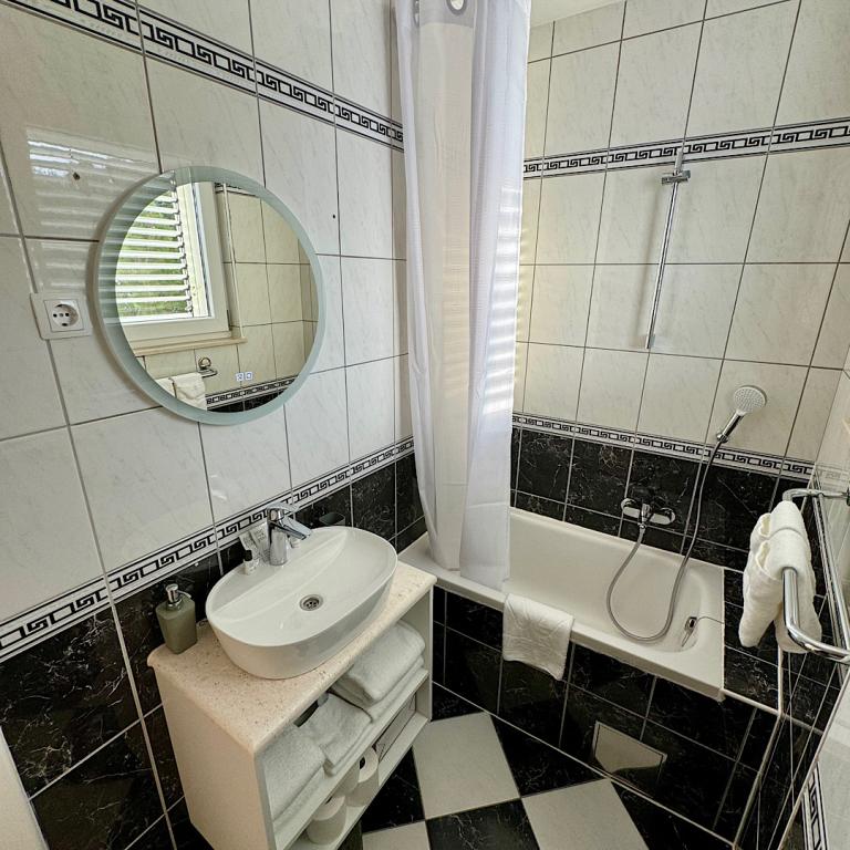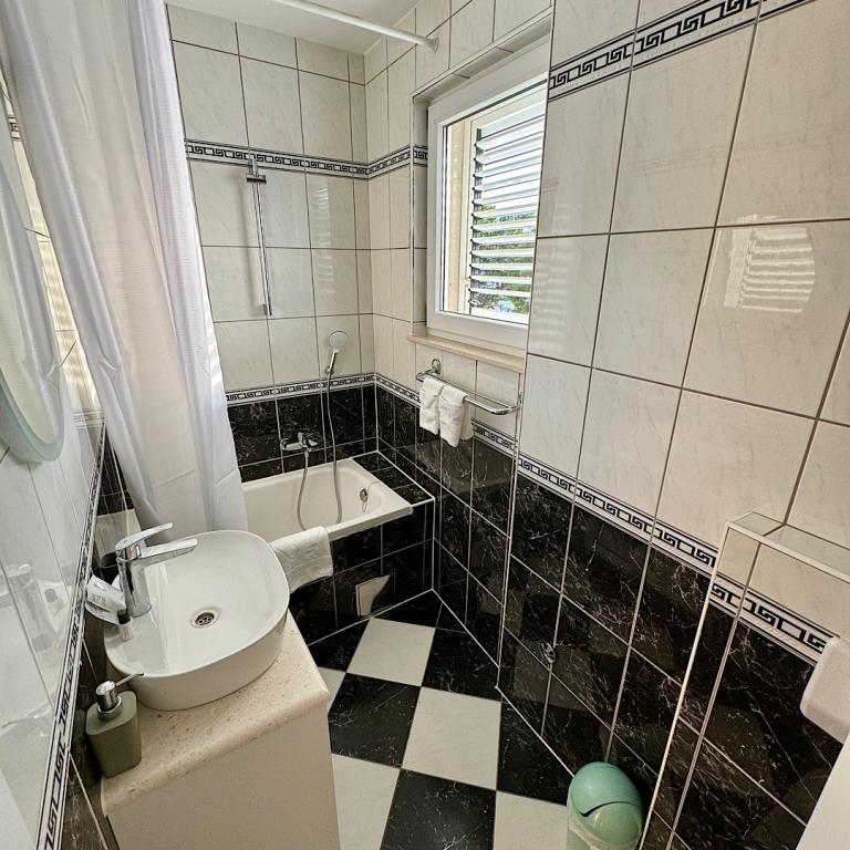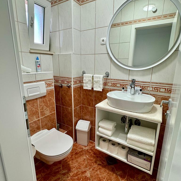 Vila Rozika este situată în centrul Baska Vodă, așa că tot ce ai nevoie este aproape și nu ai nevoie de mașină. Primul magazin se află la câțiva pași de vila, cafenele și restaurante, de asemenea, în apropiere și plaja de peste drum. Dacă veniți cu mașina, există o parcare gratuită în apropiere, unde vă puteți lăsa mașina. Apartamentul în care am petrecut 5 nopți era curat, spațios și are tot ce ai nevoie pentru o vacanță reală. Este situat la ultimul etaj al casei și are o vedere uimitoare asupra mării și a portului. Villa Rozika a fost preluată de gazdele amabile care vă stau la dispoziție pentru orice întrebare și ajutor și care ne-au făcut șederea plăcută. Sperăm să ne întoarcem în curând! Adriana