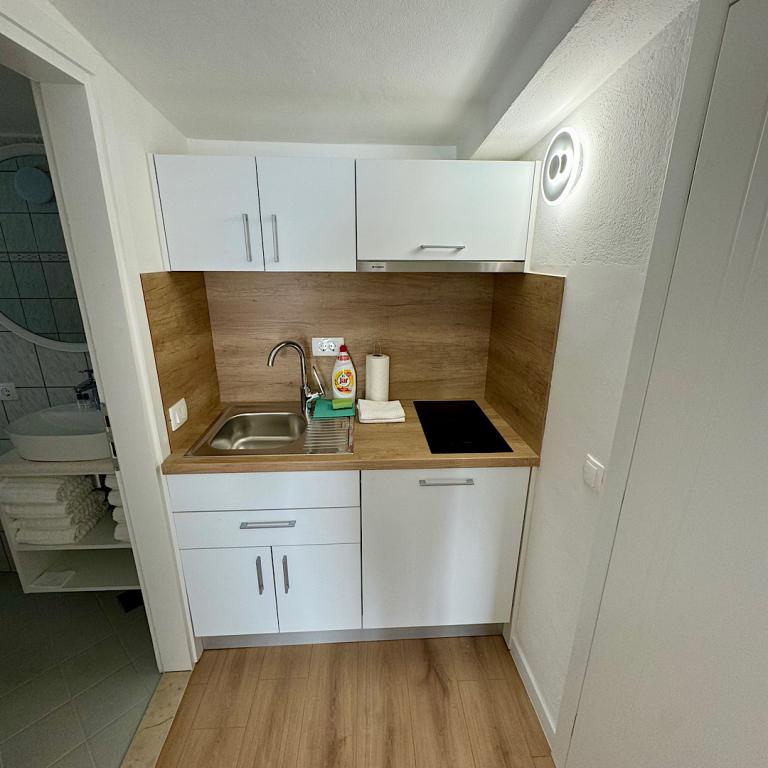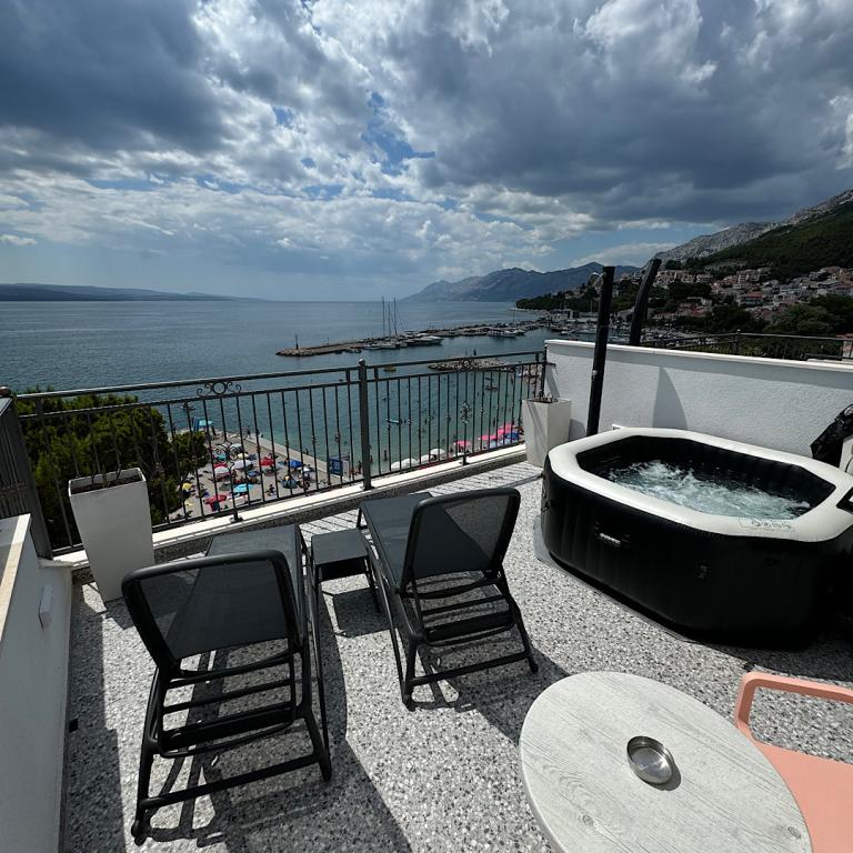 Villa Rozika este o vilă frumoasă și modernă situată în Baška Voda, un oraș mic de pe Riviera Makarska din Croația. Vila oferă cazare confortabilă și modernă pentru oaspeții care doresc să se relaxeze și să se relaxeze într-un cadru liniștit. Vila dispune de apartamente spatioase si bine dotate, cu facilitati moderne, unele apartamente au propria lor baie cu hidromasaj si terasa la soare. Oaspeții se pot bucura de o vedere frumoasă la Marea Adriatică și la munții din jur de pe balconul vilei și din zona în aer liber. Villa Rozika se află la doar câteva minute de mers pe jos de centrul orașului, unde oaspeții pot găsi restaurante, magazine și plaje frumoase. Locația convenabilă a vilei permite oaspeților să exploreze cu ușurință fermecătorul oraș Baška Voda și uimitoarea coastă dalmată. Fie că sunteți în căutarea unei vacanțe relaxante la plajă sau a unei vacanțe active pentru a explora frumusețea naturală a Croației, Villa Rozika este locul perfect pentru a vă caza. Cu cazare confortabilă și o locație superbă, oaspeții vor avea cu siguranță un sejur de neuitat și plăcut în Baška Voda.