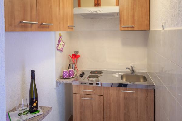 Frumos renovat, ziduri groase mențină o atmosferă rece pentru sejurul dvs. și de somn. Într-un mediu de origine liniștită partea veche a orașului, cu doar o metri distanță câteva de strada principala promenada cu taverne și baruri. Bucataria este mic, dar mai mult de la îndemână pentru două cu aragaz pe doua plită. Poate nu orice fel de cuțit ascuțit pentru pâine și carne. În împrejurimi liniștite ale apartamentului este o terasa cu o viță de vie, care oferă umbră în cele mai fierbinți zile. Am fost pentru că prețul mai mult decât mulțumit, precum și ușurința în utilizare a proprietarilor este demn de remarcat, :)