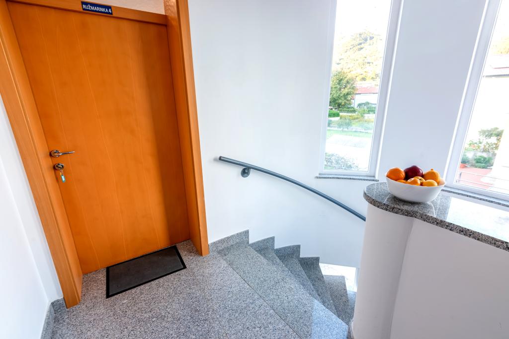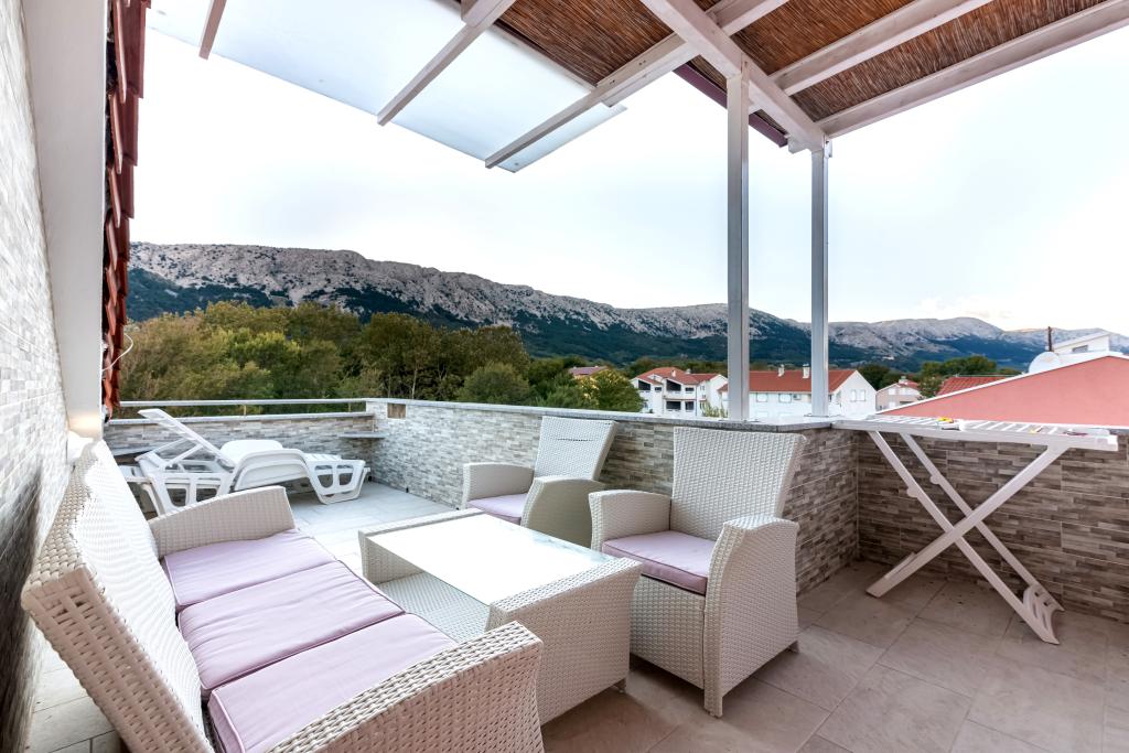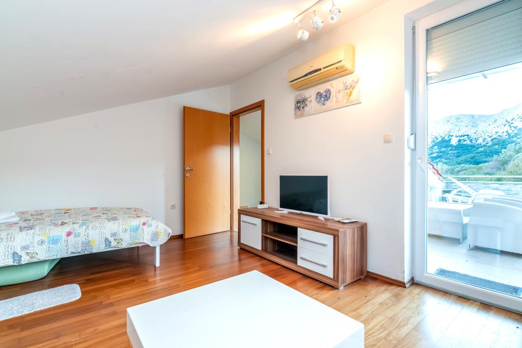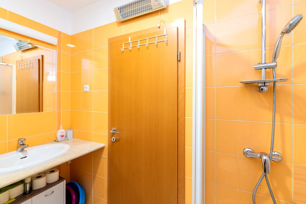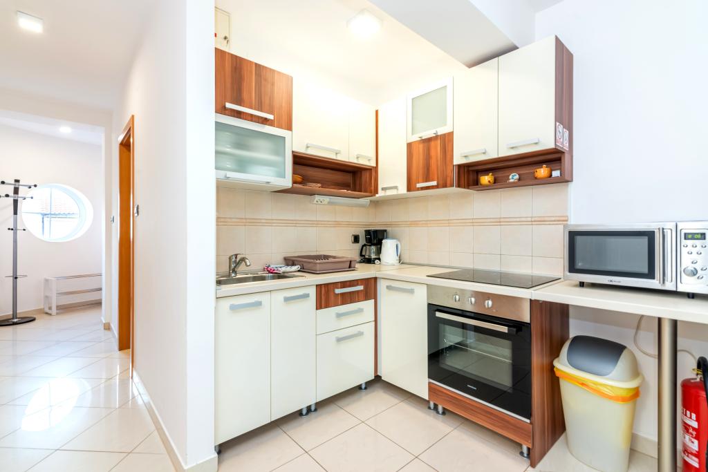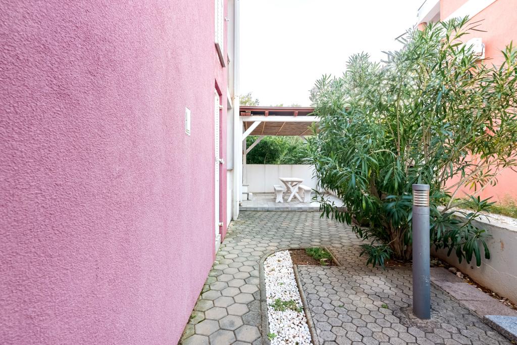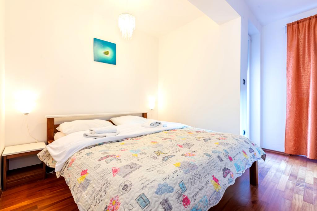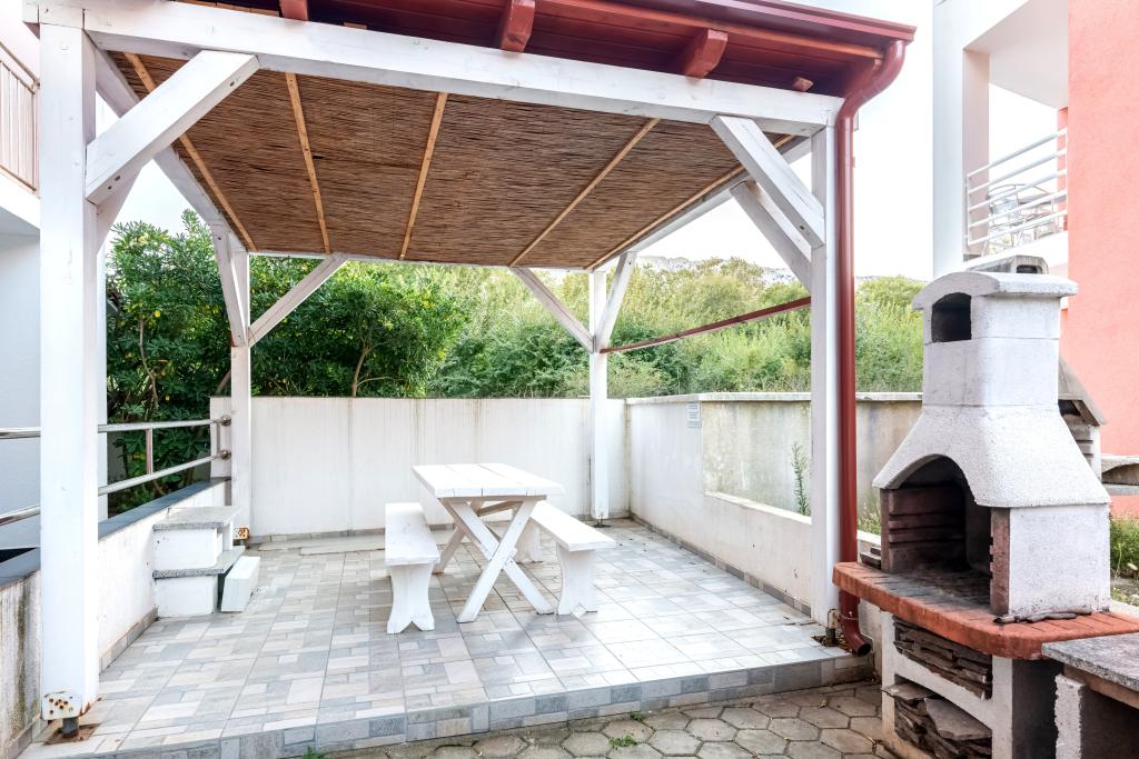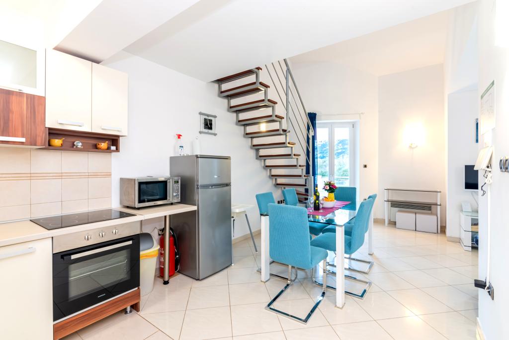 Apartamentul este situat la etajele 2 si 3. Dispune de 2 camere duble cu paturi duble, 1 camera dubla cu paturi de o persoana, living cu canapea pentru 2 persoane, 2 bai, bucatarie complet utilata si sufragerie. Acest apartament este situat la aproximativ 3 minute de mers pe jos de plaja centrală. Situat într-o zonă liniștită, acest apartament modern este dotat cu 3 aparate de aer condiționat, internet WiFi gratuit, SAT-TV, o terasă spațioasă și parcare privată gratuită în fața casei. Unitatea este, de asemenea, lângă un mic magazin și restaurant.