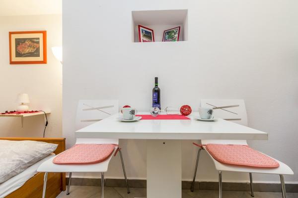 Ambianta foarte placuta si placuta a apartamentului, apartamentul dispune de aer conditionat si este confortabil pentru doua persoane. Piscina este îngrijită și curată și aerul este mai bun decât în centrul orașului Baška. Apartamentul este curat și am avut mereu prosoape curate. Recomandări tuturor celor cu gazde bune și primitoare care nu sunt o problemă pentru noi, oaspeții!