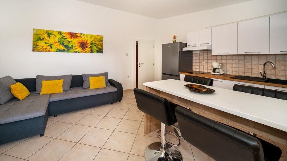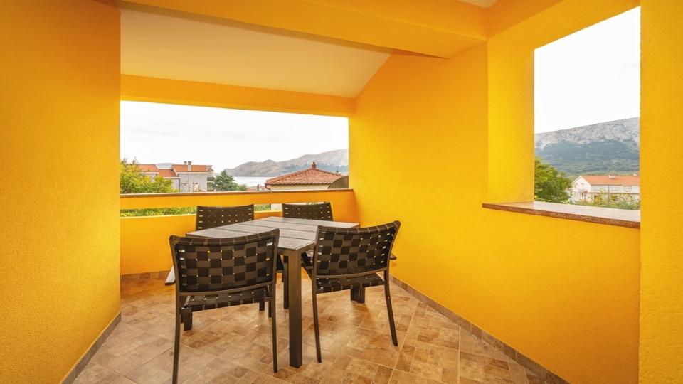 Apartament într-o zonă liniștită din Baška de pe insula Krk, complexul este situat la 400 de metri de plajă și la 200 de metri de centru. Are o terasă cu vedere la mare. WI-FI este inclus în prețul de închiriere. parcare acoperită și aer condiționat.