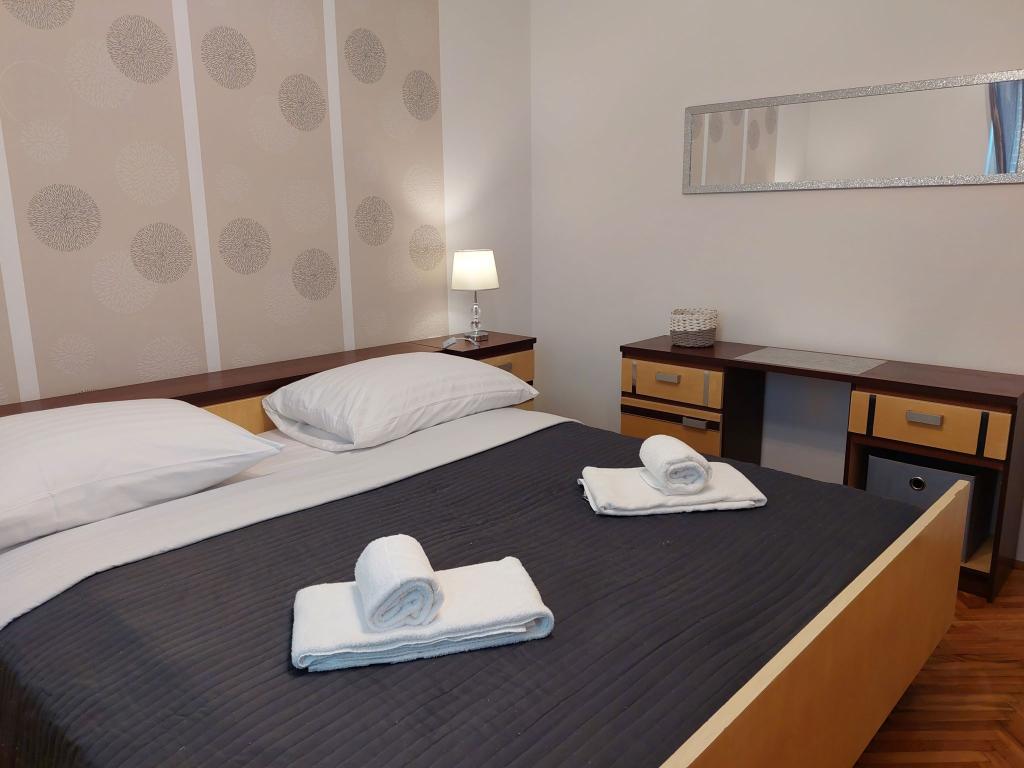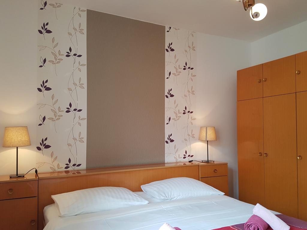 Unități de cazareVă rugăm să rețineți că rezervările pot fi făcute pentru minimum 4 nopți în perioada 01.03.-19.06., pentru minimum 7 nopți în perioada 20.06.-04.09. și pentru minimum 4 nopți în perioada 05.09.-06.10. Prețurile vor fi afișate atunci când introduceți data dorită a sejurului și numărul de persoane. Prețurile pe sezon pot fi consultate în lista de prețuri în € (în dreapta, sub imaginile unității de cazare dorite). Costuri suplimentare: înregistrare (5 EUR/persoană/o singură dată) și curățenie finală (40 EUR/per sejur). Animalele de companie nu sunt permise. Pentru o rezervare fixă, trebuie plătit un avans de 30% din prețul total al apartamentului (prin transfer bancar). Restul sumei pentru cazare și înregistrare se plătește la sosire. Check-in-ul în apartament este posibil după ora 15:00, check-out-ul se face până la ora 10:00.