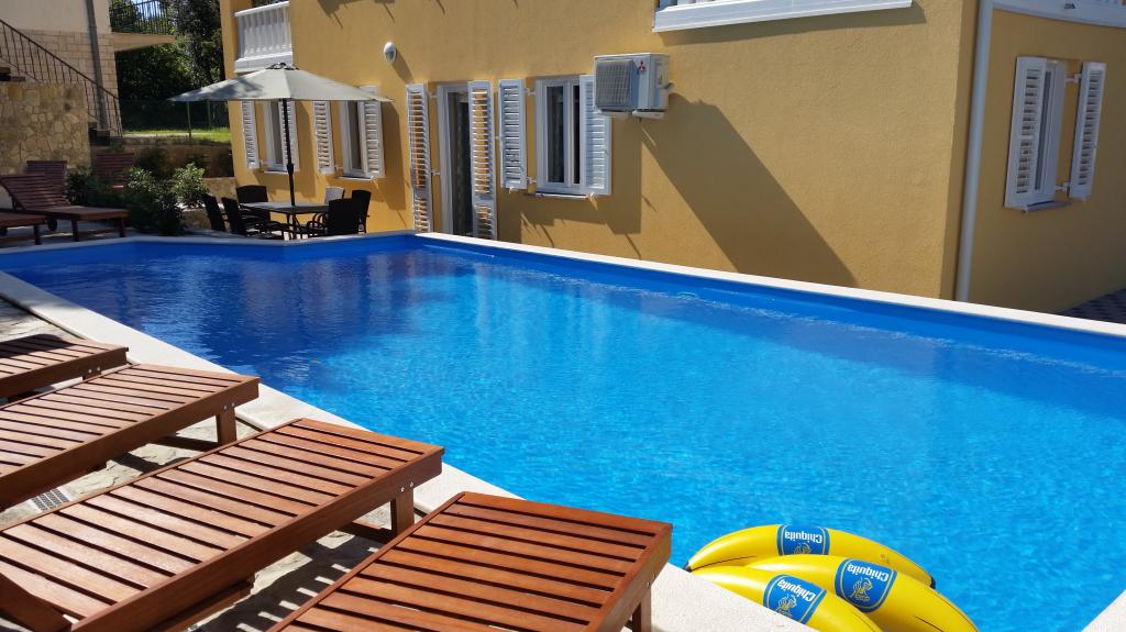 Apartamente mobilate modern, la doar 5 minute de mers pe jos de frumoasa plajă Vela, cu piscină comună în aer liber și grătar. Casa are 9 apartamente dotate cu mașină de spălat vase, mașină de spălat rufe, seif, aer condiționat, internet și TV prin satelit. Fiecare apartament are un loc de parcare. Animalele de companie nu sunt binevenite.