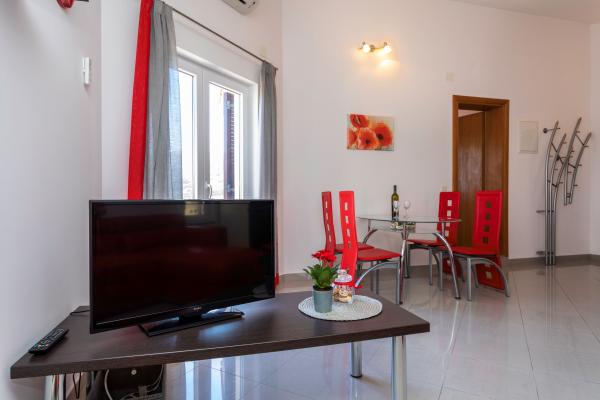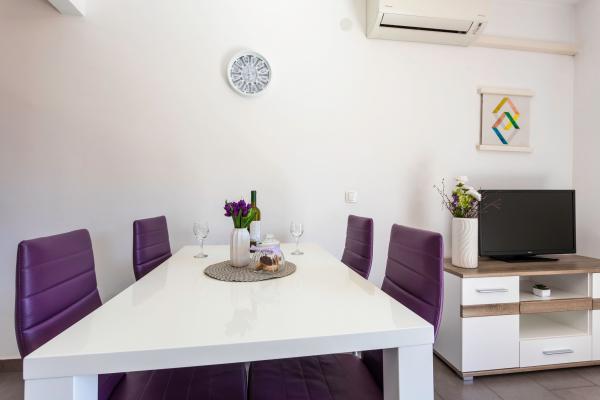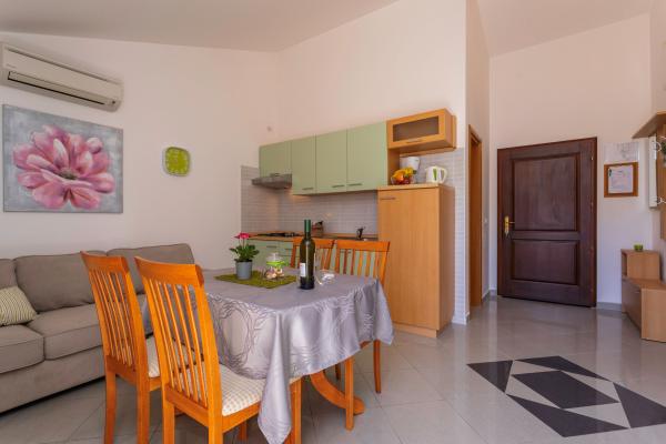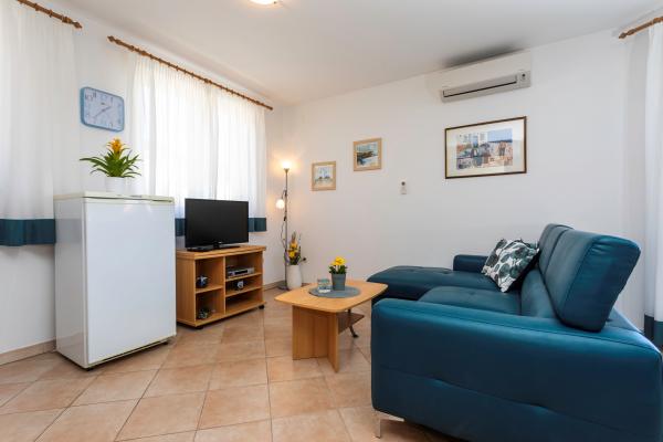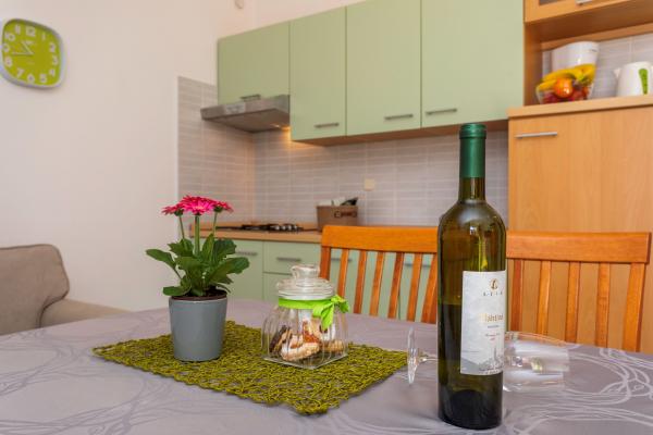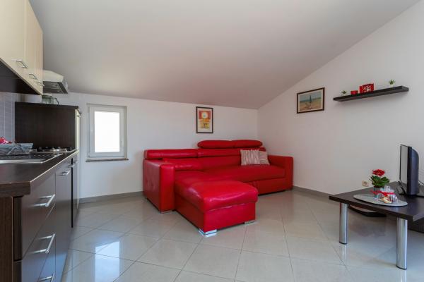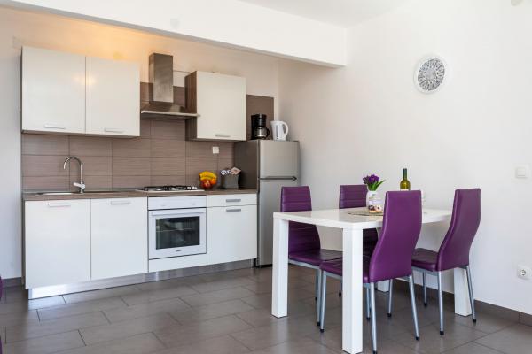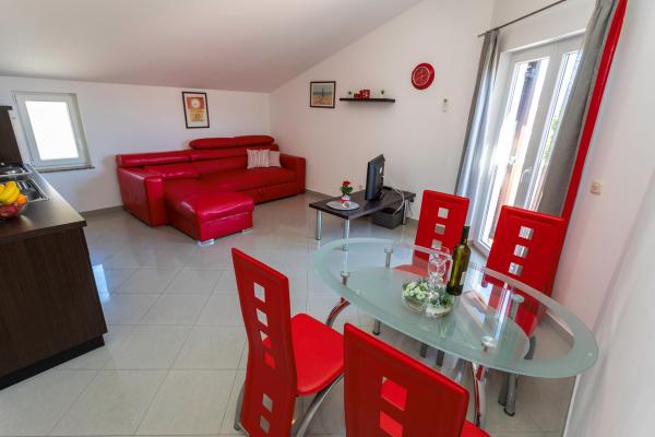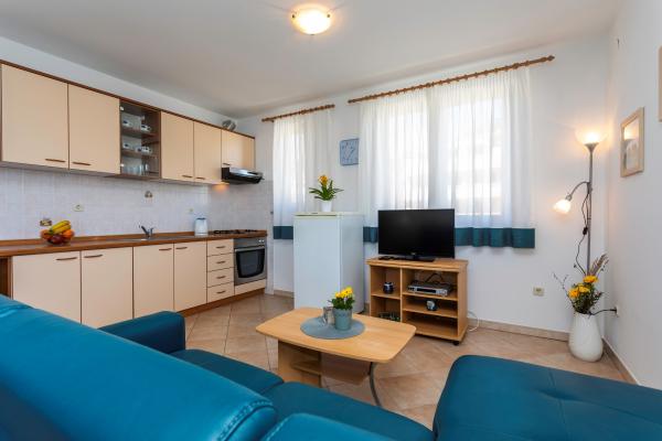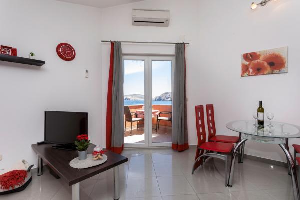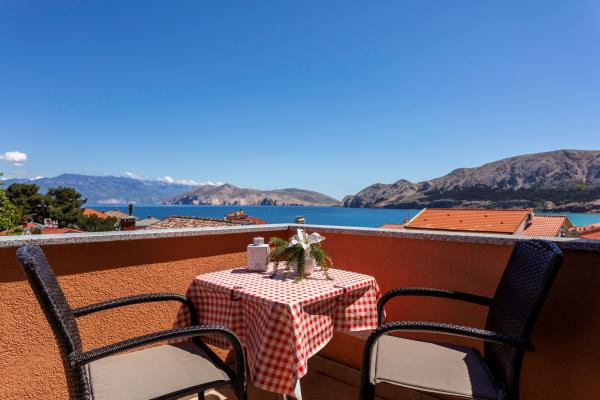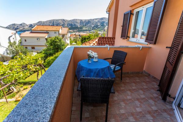 Apartamentele sunt situate într-o zonă liniștită din Baska. Bascanska cunoscut plajă cu nisip este de numai 200 m. Magazinul este situat la 100 m și restaurante 200 m. În plus față de înot pe frumoasa plajă și plajele din apropiere mai mici, există o posibilitate drumeții și ciclism pe trasee bine marcate. În grădină parcare securizată pentru fiecare apartament și un grătar. Vă dorim o ședere plăcută în apartamentele noastre.