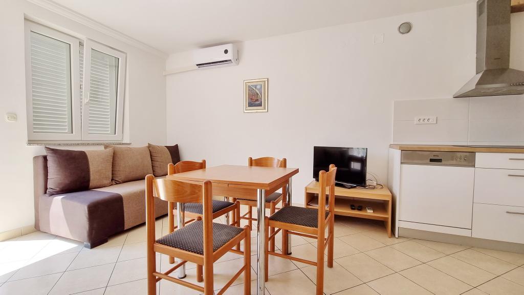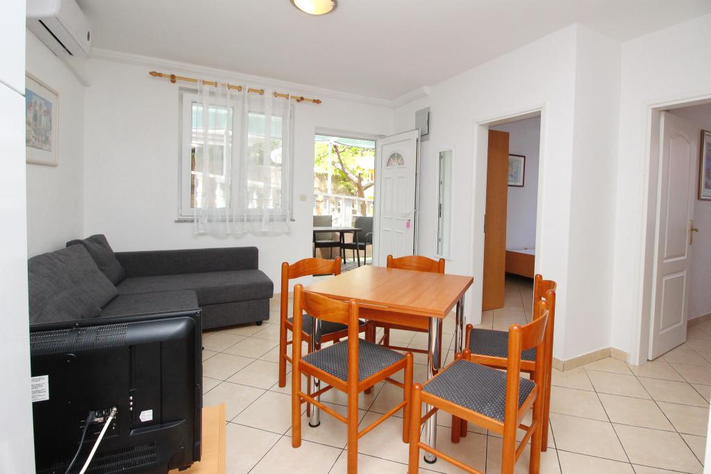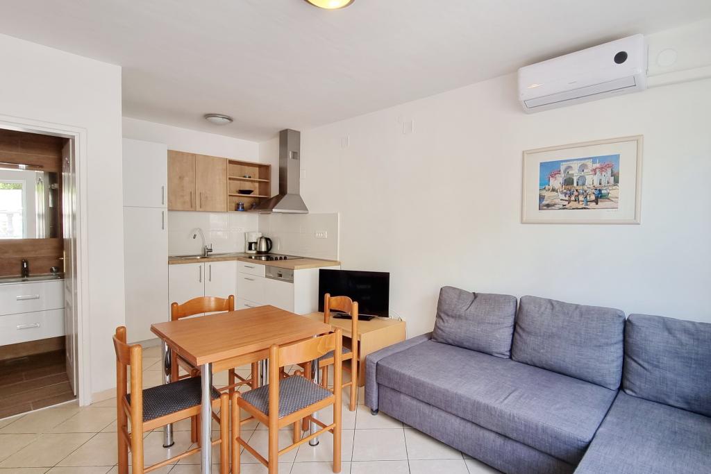Unități de cazareVă rugăm să rețineți că rezervările se pot face pentru minimum 4 nopți în perioada 01.03.-19.06., pentru minimum 7 nopți în perioada 20.06.-04.09. și pentru minimum 4 nopți în perioada 05.09.-06.10. Prețurile vor fi afișate atunci când introduceți perioada dorită de ședere și numărul de persoane. Puteți vedea prețurile pe sezon în lista de prețuri în € (în dreapta, sub imaginile unității de cazare dorite). Costuri suplimentare: înregistrare (5 EUR/persoană/o singură dată). Animale de companie - permise - la cerere - (10 EUR/animal/noapte) Pentru o rezervare fixă, este necesar să se plătească un avans (prin cont bancar) în valoare de 30% din prețul total al apartamentului. Restul taxei de cazare și înregistrare se plătește la sosire. Check-in-ul în apartament este posibil după ora 14:00, plecarea se face până la ora 10:00.