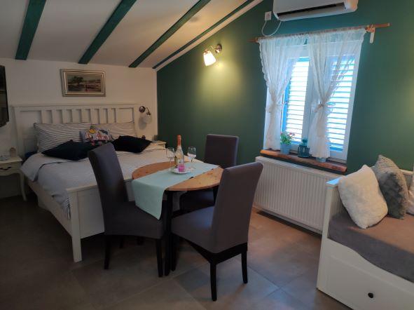 Apartament nou studio complet mobilat și utilat, situat chiar în centrul orașului Baška. Parcare asigurata.