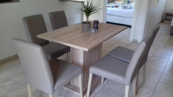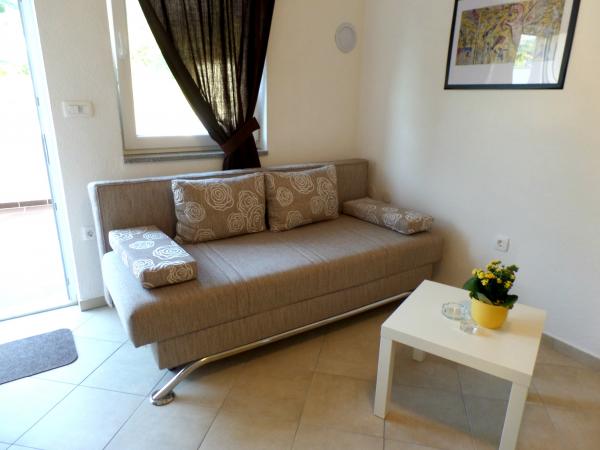 Clădirea are 8 apartamente, dintre care 4 apartamente cu o cameră la parter și 4 apartamente cu două camere sunt situate la primul etaj. Apartamentele de la parter au terasă privată și balcon, în timp ce apartamentele de la etaj au balcon privat. Piscina si terasa exterioara cu gratar pe gaz sunt zone comune care pot fi folosite de toti oaspetii casei.