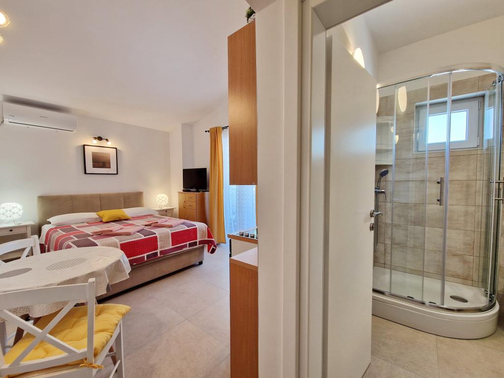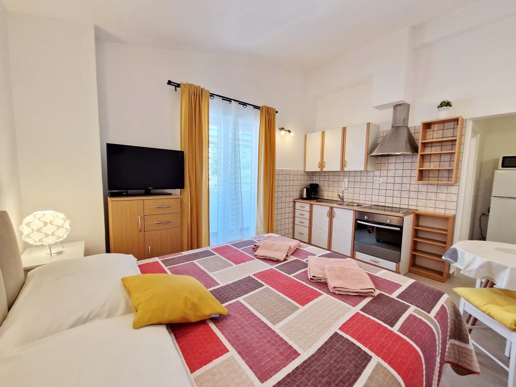 Unități de cazareVă rugăm să rețineți că rezervările se pot face pentru minimum 4 nopți în perioada 01.03.-19.06., pentru minimum 7 nopți în perioada 20.06.-04.09. și pentru minimum 4 nopți în perioada 05.09.-06.10. Prețurile vor fi afișate atunci când introduceți data dorită a sejurului și numărul de persoane. Prețurile pe sezon pot fi văzute sub lista de prețuri în € (în dreapta, sub imaginile unității de cazare dorite). Taxe suplimentare (se plătesc la fața locului): - Taxă de înregistrare 5,00 EUR / persoană - Copil fără pat (până la 3 ani) 5 EUR / noapte - Animalele de companie nu sunt permise Pentru o rezervare fixă, este necesar să se plătească un avans (prin cont bancar) în valoare de 30% din prețul total al apartamentului. Restul taxei de cazare și de înregistrare se plătește la sosire. Check-in-ul în apartament este posibil după ora 14:00, plecarea se face până la ora 10:00.