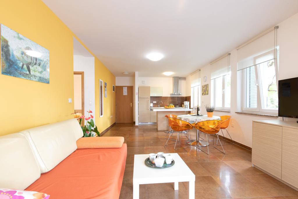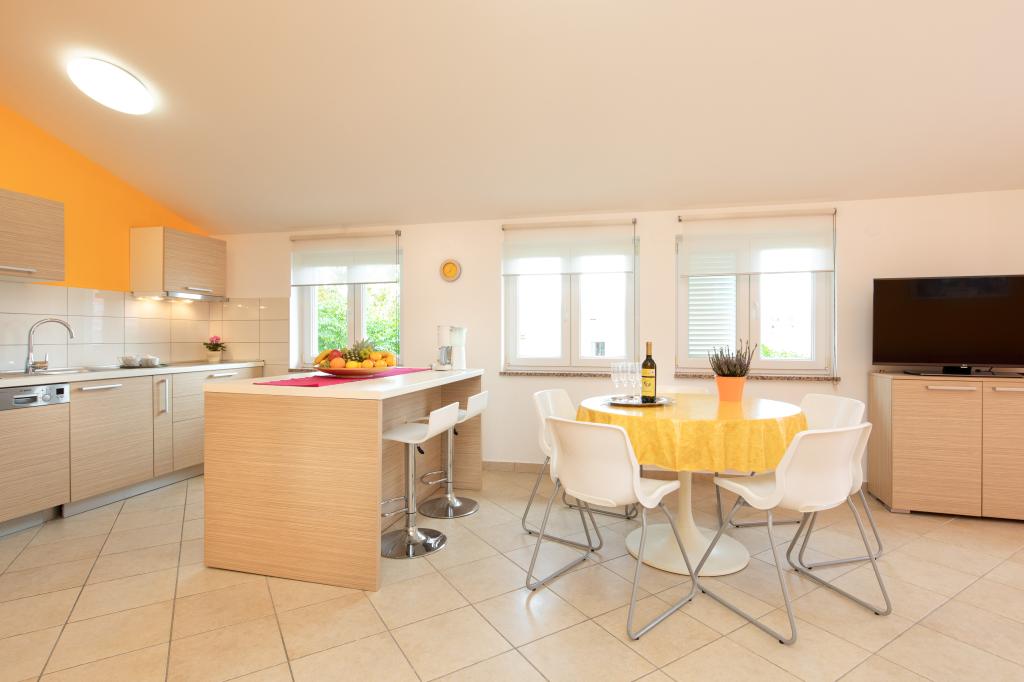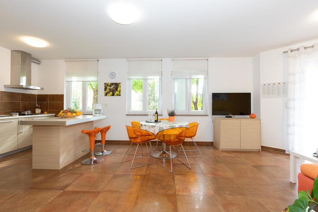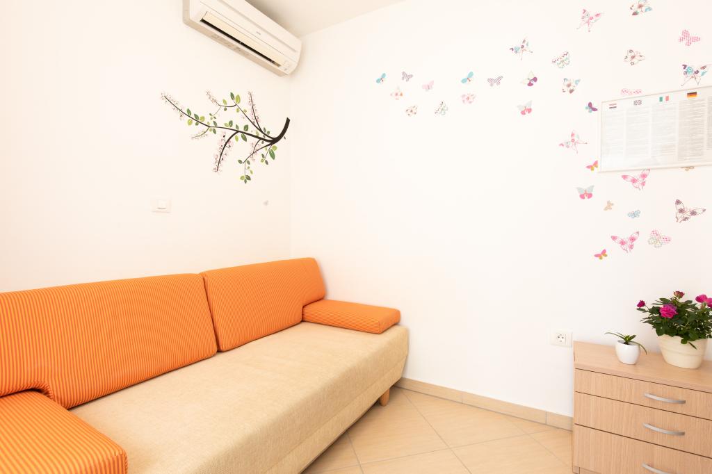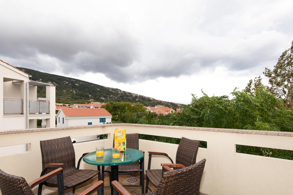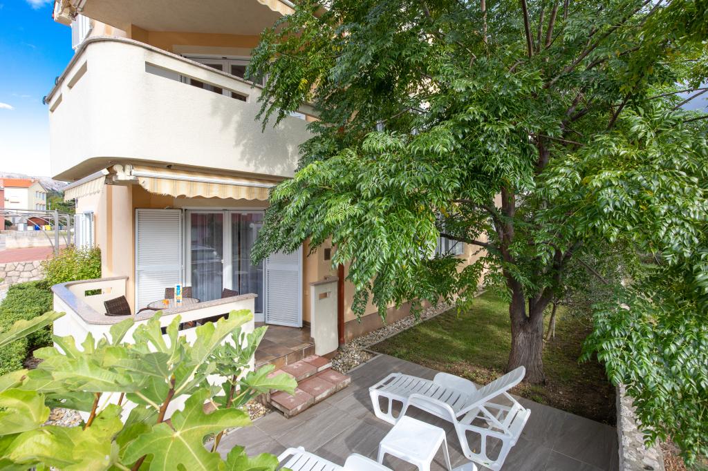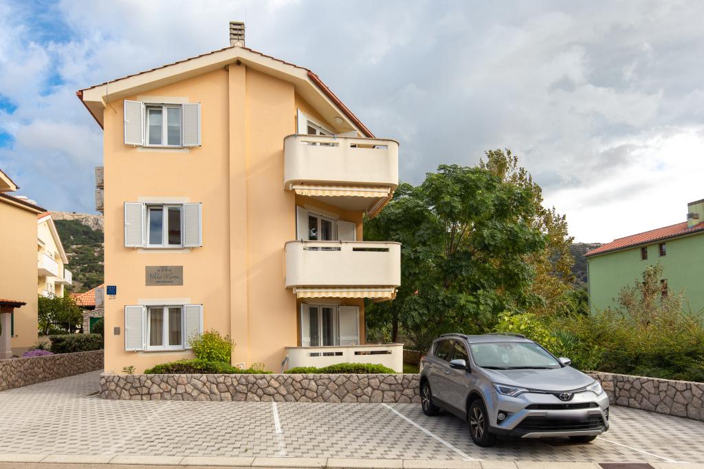 Apartamentele VillaMare sunt situate într-o zonă liniștită din Baška, la 5-7 minute de mers pe jos de o frumoasă plajă de nisip, precum și de centrul însuși cu toate facilitățile oferite de un oraș turistic. Sunt 5 apartamente in categoria 4****: 4 x A/4+2 pentru max 4-6 persoane, 1 x A/2+2 pentru max 2-4 persoane si o garsoniera frumoasa pentru max 1-2 persoane . Toate apartamentele sunt dotate cu aer condiționat și utilate modern, WiFi gratuit, TV prin satelit, 1 loc de parcare per apartament; în partea de curte, o zonă de grădină cu grătar, foișor din lemn și loc de joacă pentru copii este disponibilă tuturor oaspeților. La cerere sunt disponibile un pătuț, scaun înalt/masă de hrănire, mașină de spălat. Toate apartamentele din extensie au o terasă confortabilă unde vă puteți relaxa complet și vă puteți bucura de priveliștea frumoasă la Baška și muntele care o înconjoară, în timp ce apartamentul de la parter are o terasă suplimentară extinsă cu șezlonguri și acces direct la grădina frumoasă ( ...si smochini :-)